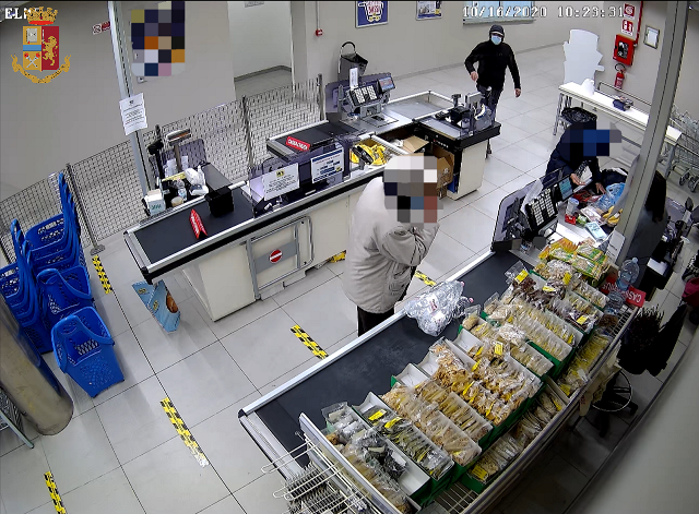 Le ricerche dell’uomo vengono estese su tutto il territorio nazionale e lunedì notte personale del Compartimento di Polizia Ferroviaria per il Piemonte e la Valle d’Aosta riconoscono il reo a bordo di un treno proveniente dalla Campania,. Gli agenti del commissariato Barriera Nizza attendono l’arrivo del convoglio a Torino Porta Nuova, ma non sono i soli: diretta verso il binario di discesa passeggeri viene vista la madre dell’uomo. Questa riferisce ai poliziotti di essere stata contattata dal trentacinquenne a seguito del controllo effettuato dagli operatori della Polfer. Ritenendo poco attendibile la versione fornita, gli agenti controllano la donna. Presso l’abitazione vengono rinvenuti i capi d’abbigliamento utilizzati dal figlio per rapinare il supermercato di via Donizetti, come mostrato dalle immagini della video sorveglianza.