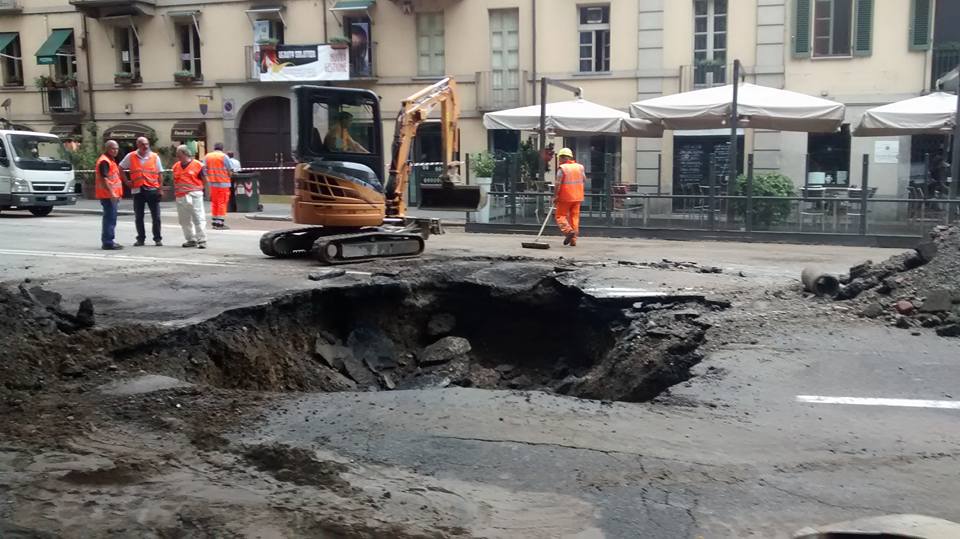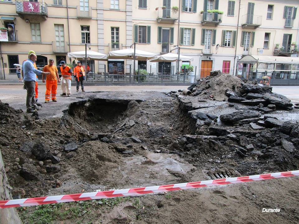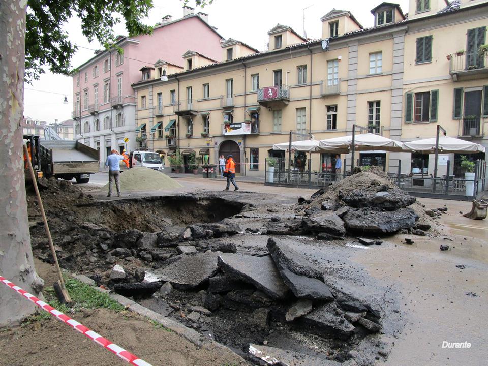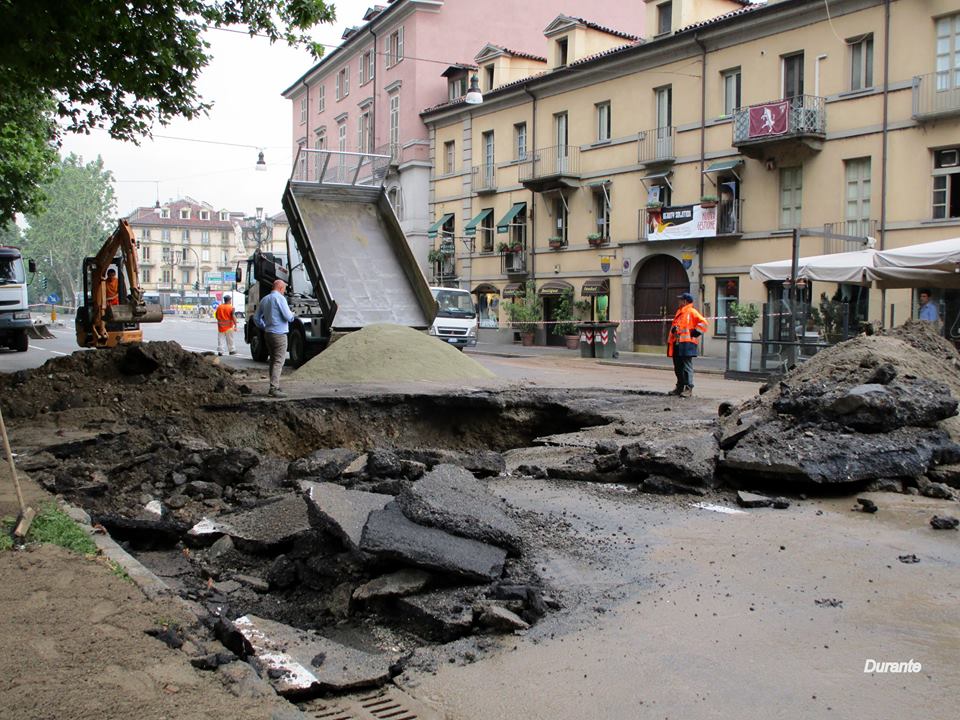 La polizia municipale comunica che nelle prime ore di questa mattina, venerdì 12 giugno, a Torino, si è aperta una voragine quasi in piazza Gran Madre che impedisce ai veicoli di percorrere corso Casale e corso Moncalieri, obbligandoli a circumnavigare la piazza. I tecnici Smat sul posto per risolvere al più presto il problema. Si prevedono però fortissimi disagi alla circolazione per tutta la giornata di oggi. La voragine si è aperta a causa della rottura di una tubazione dell’acqua.