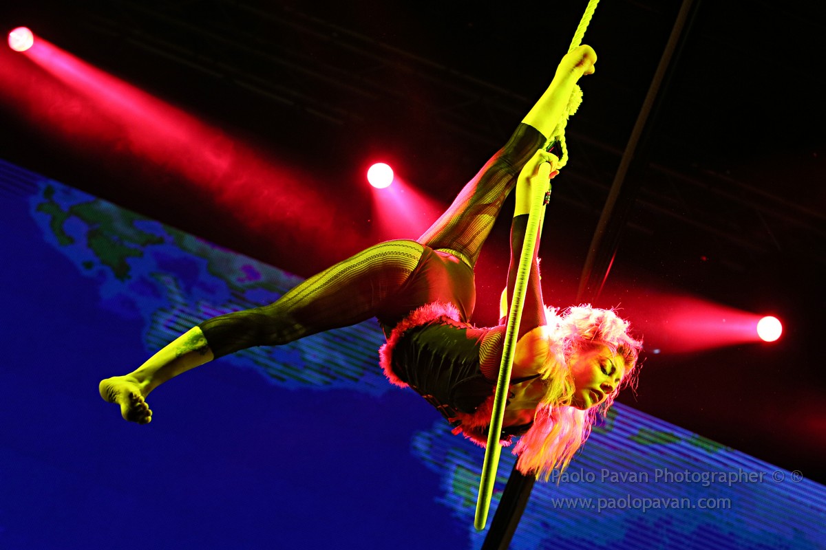 Lo spettacolo è ricco di emozioni e colori, gli artisti, veri e propri atleti, si esibiscono su trapezi, anelli e corde, dimostrando tutta la loro bravura. Due ore di magia per grandi e piccoli, nell’accogliente area verde esterna di Shopville Le Gru.