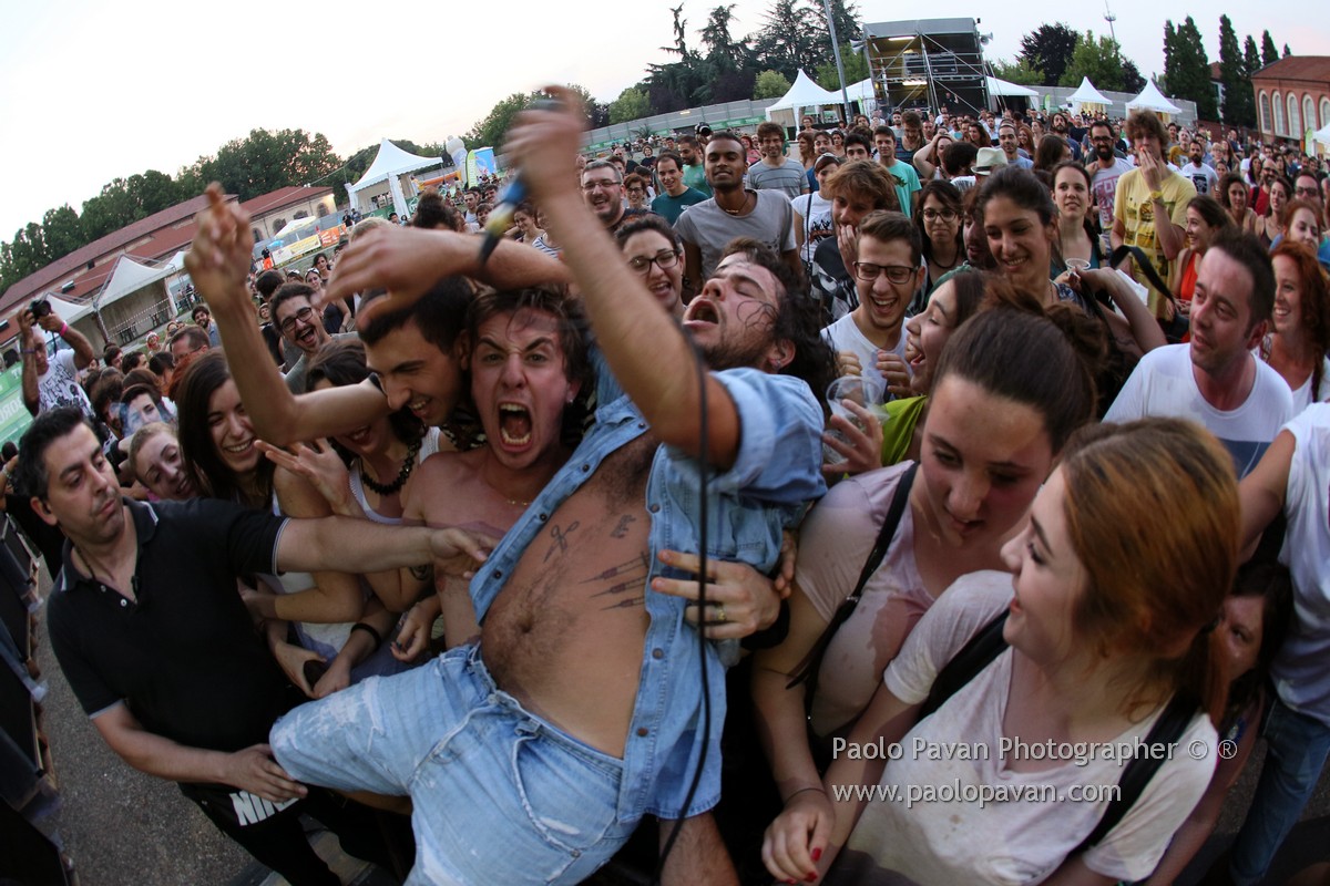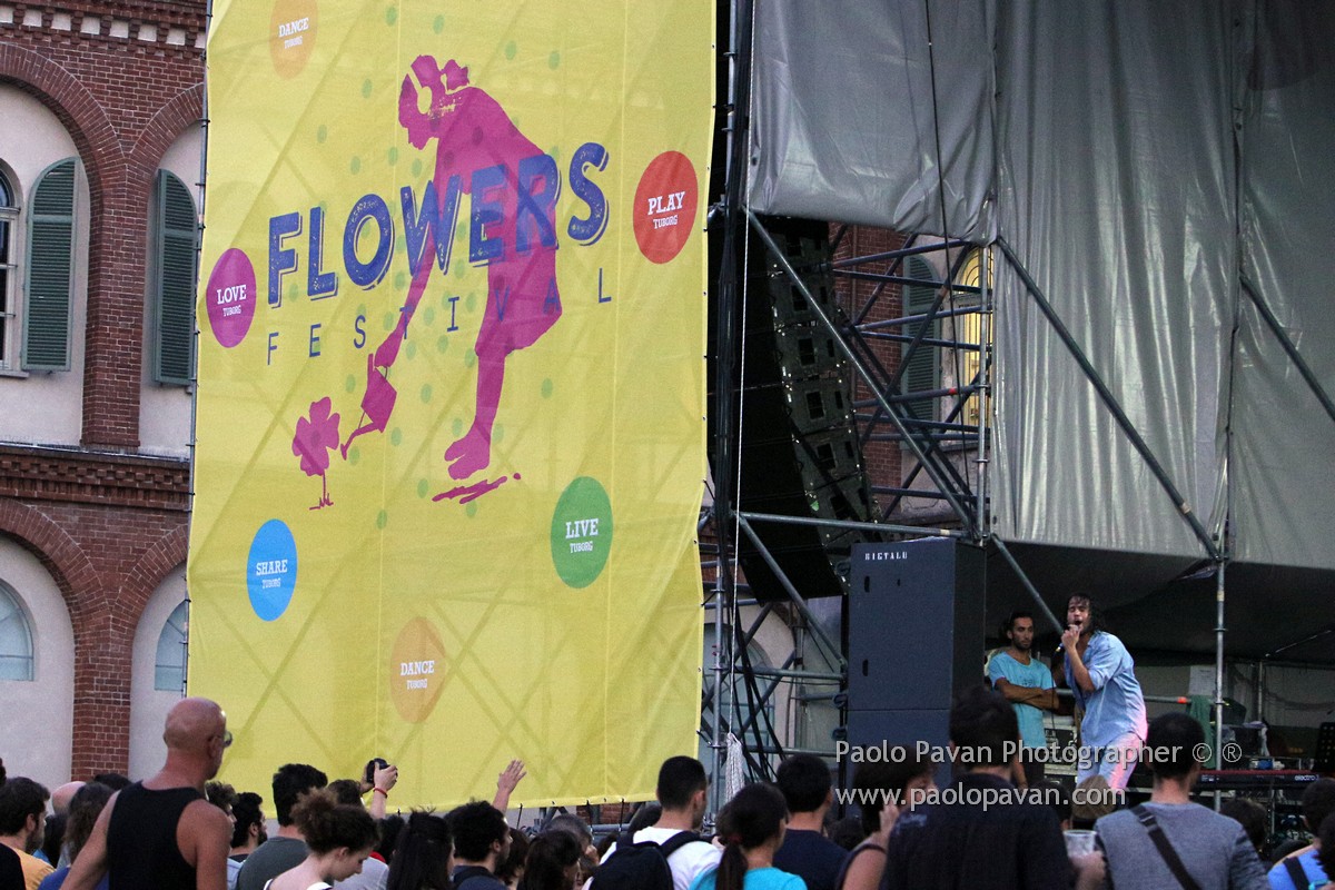 Prima serata per il Flowers festival, quest’anno nella cornice del Parco dalla Chiesa di Collegno (Pad 14). Bella l’area, spazi verdi, punti ristoro e soprattutto tanta buona musica. Band di punta della serata, i TRE ALLEGRI RAGAZZI MORTI, che per l’occasione si sono esibiti accompagnati dall’ABBEY TOWN JAZZ ORCHESTRA.