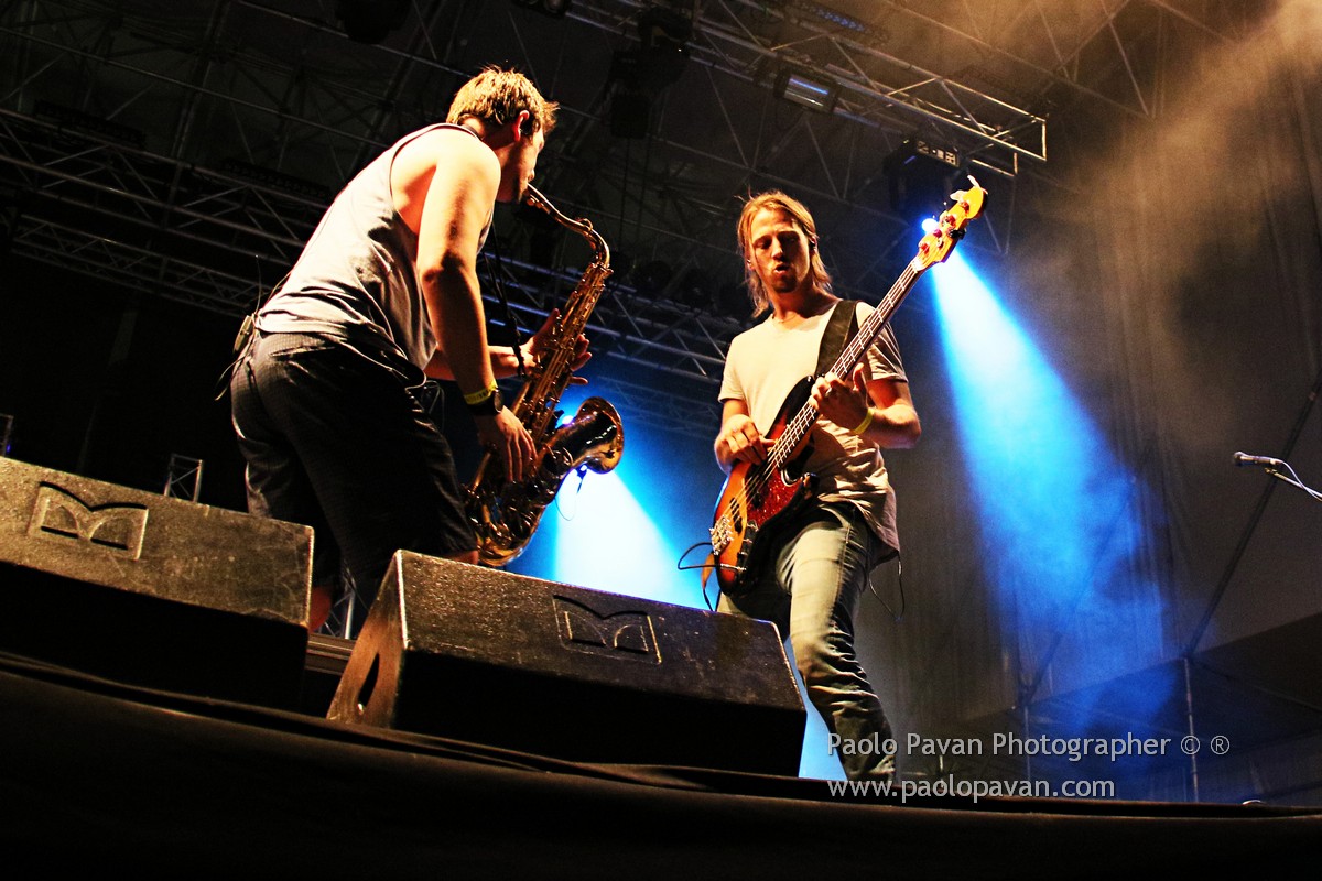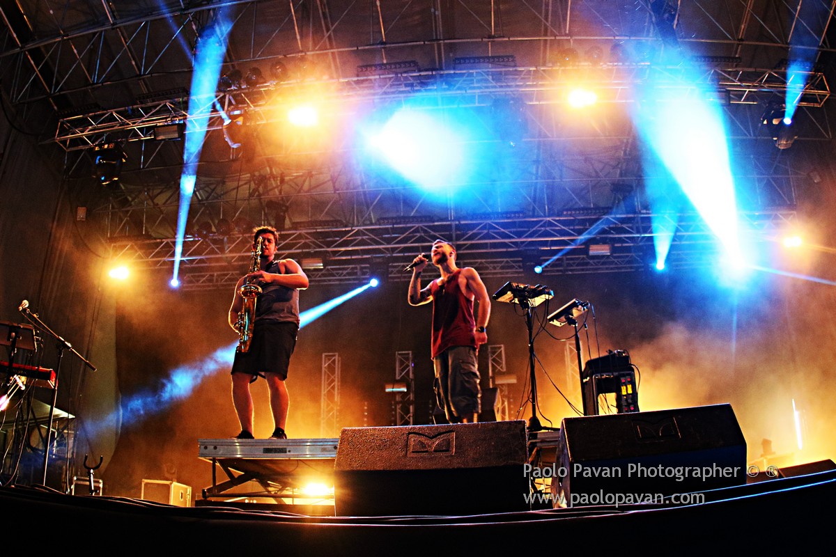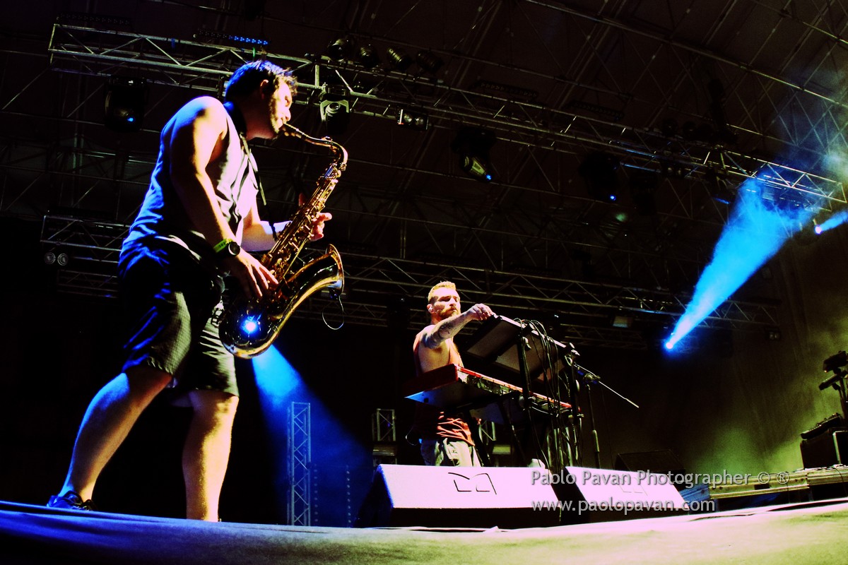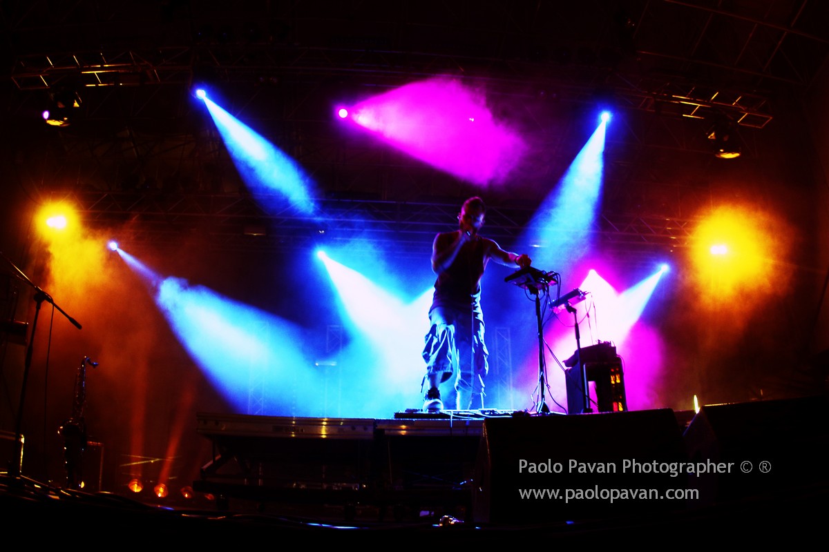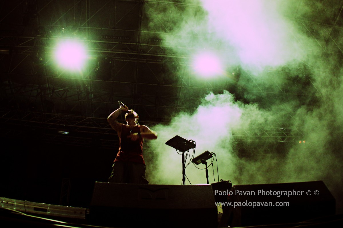 E’ stata la serata dei ritmi serrati e del dub al Flowers Festival, dove si sono esibiti due nomi davvero noti di questa scena musicale. Prima Dub FX, artista australiano accompagnato da un duo di amici, come li definisce lui, tastiere/sax e basso, voce, dub, hip hop, drum and bass e tanto ritmo, per coinvolgre un pubblico caldissimo e con grande voglia di ballare e divertirsi.