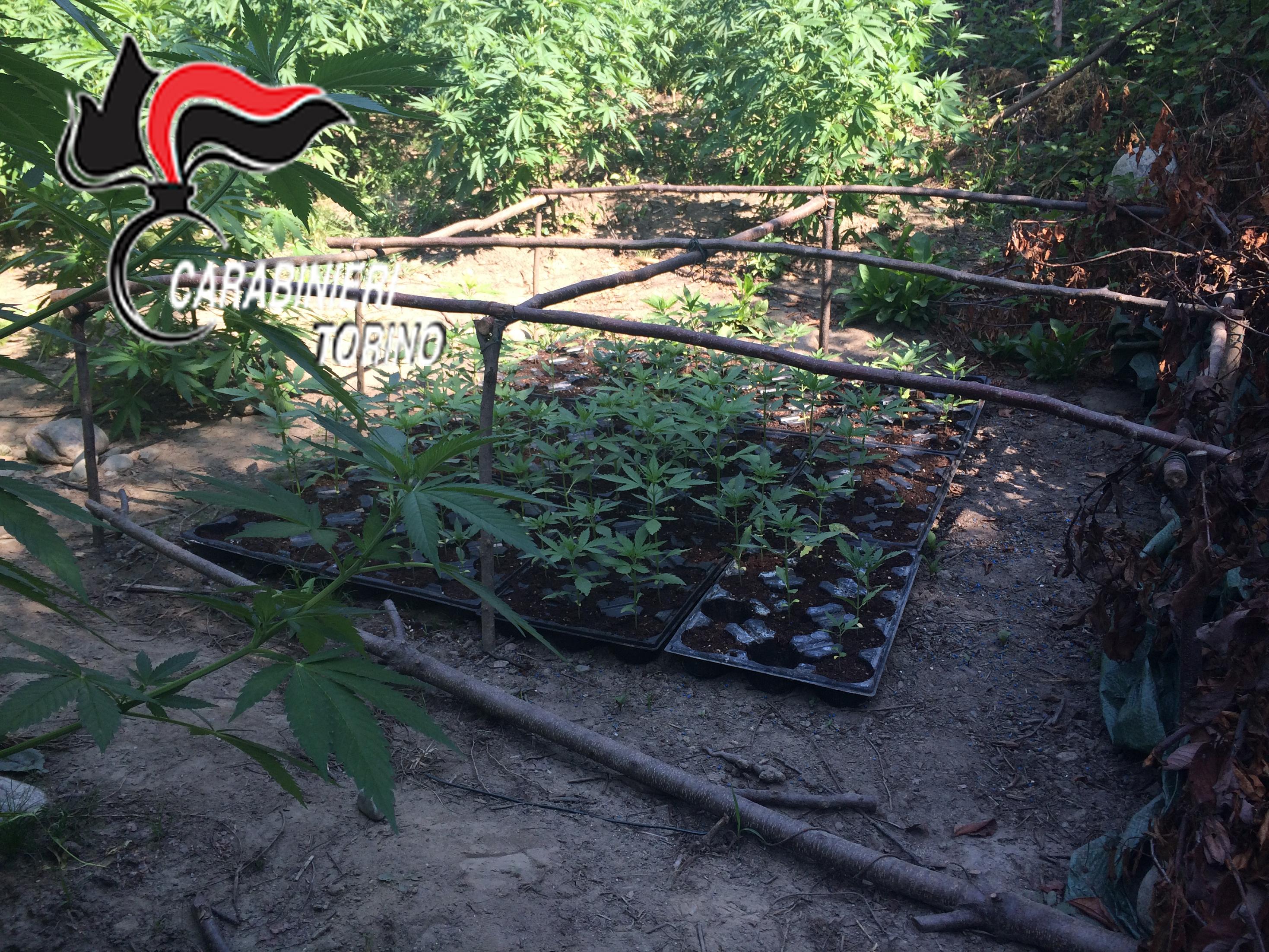 I carabinieri della stazione di Mathi hanno individuato un terreno demaniale, a Villanova Canavese, lungo la strada Provinciale 24, che era stato trasformato in una piantagione di marijuana. Sono stati sequestrati oltre un migliaio di piante, alcune delle quali alte più di due metri. Sequestrati inoltre tre tende da campeggio, un machete, una cucina da campo, varia attrezzatura per la coltivazione, irrigazione e il confezionamento della droga.