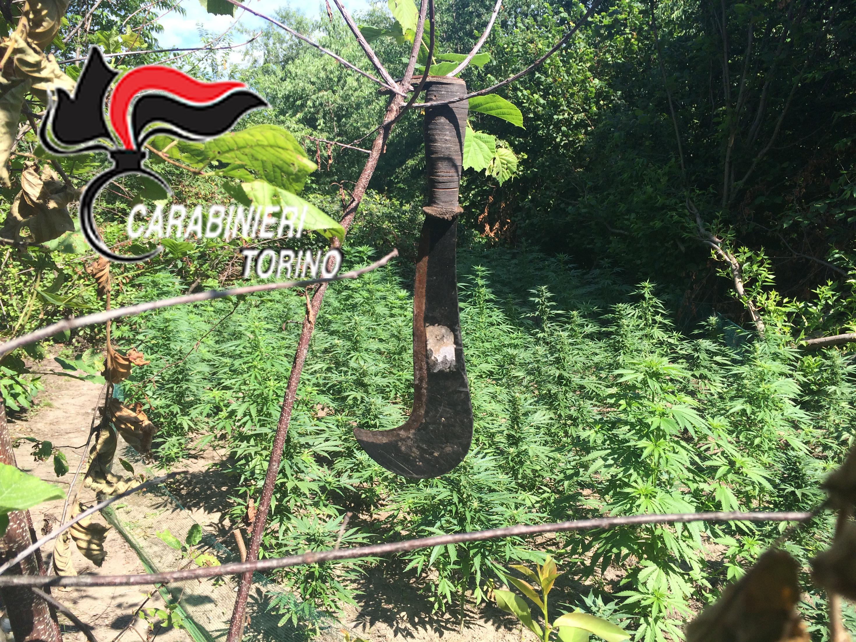 I carabinieri della stazione di Mathi hanno individuato un terreno demaniale, a Villanova Canavese, lungo la strada Provinciale 24, che era stato trasformato in una piantagione di marijuana. Sono stati sequestrati oltre un migliaio di piante, alcune delle quali alte più di due metri. Sequestrati inoltre tre tende da campeggio, un machete, una cucina da campo, varia attrezzatura per la coltivazione, irrigazione e il confezionamento della droga.