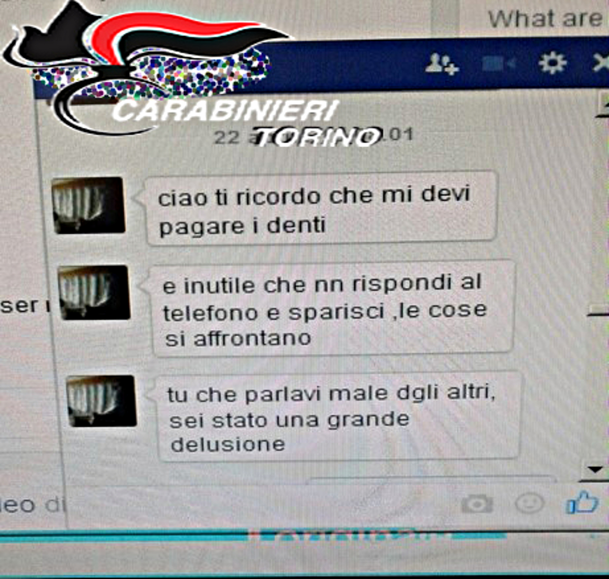 Sono iniziate le minacce dell’odontotecnico che ha reclutato Salvatore F. per incassare il denaro e che ha minacciato la vittima sia tramite facebook sia tramite whatsapp. Salvatore F. è stato arrestato dai carabinieri nel momento in cui ha incassato la prima rata mentre il suo mandate è stato denunciato, per ora, per concorso in estorsione ed esercizio abusivo della professione di odontoiatra. Il falso dentista e la vittima si sono conosciuti in carcere. Il cliente potrebbe aver subito gravi e irreversibili danni a seguito dei lavori odontoiatrici.