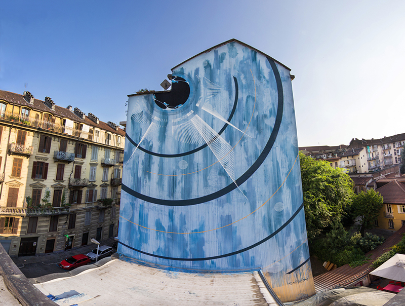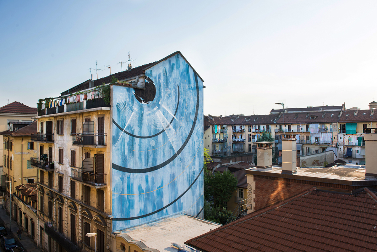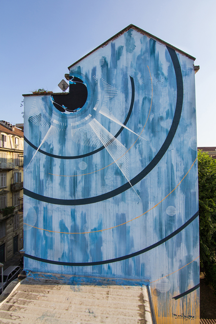 Si chiama “Blu cerebrale” ed è l’ultima opera di Corn79 appena conclusa su una parete cieca di San Salvario a Torino. Si tratta di un’opera di notevoli dimensioni, capace di lasciare un segno importante nel quartiere.