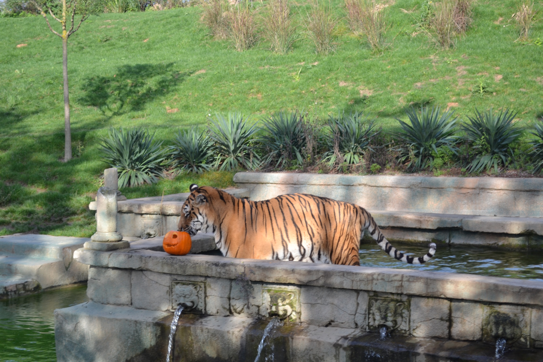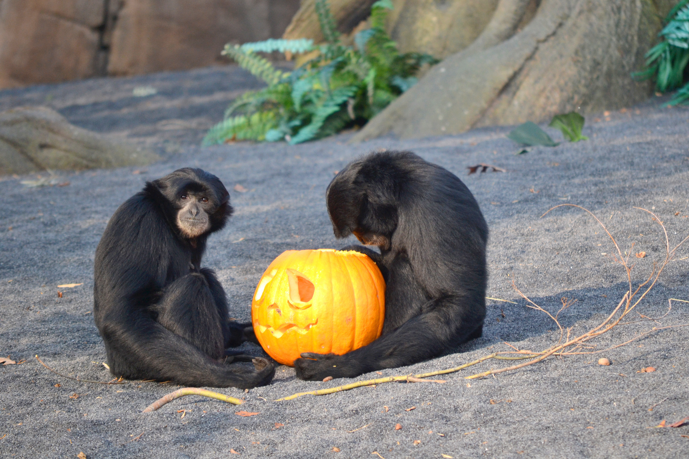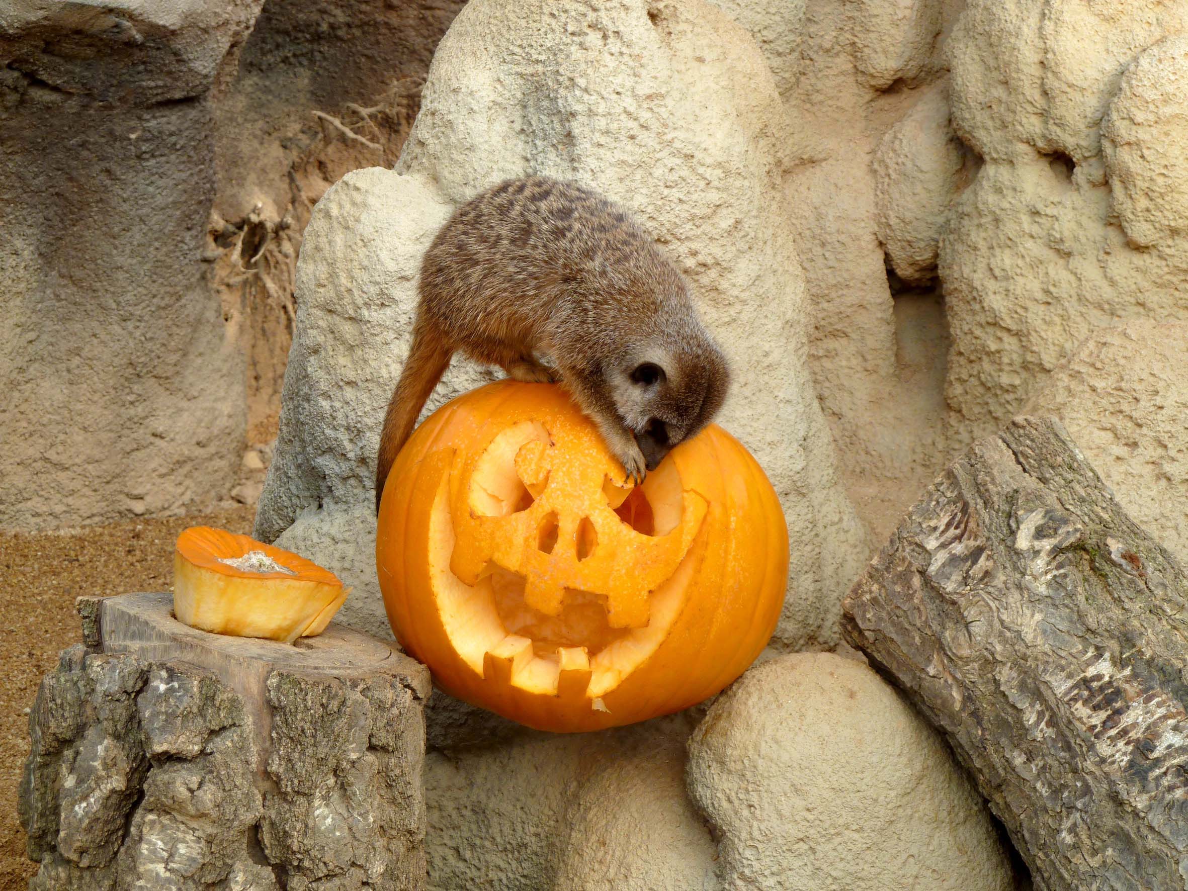 Festa come sempre anche per gli animali del parco, ai quali saranno regalate le tipiche zucche di Halloween. Nelle foto tigri, siamanghi e suricati alle prese con le zucche lo scorso anno.