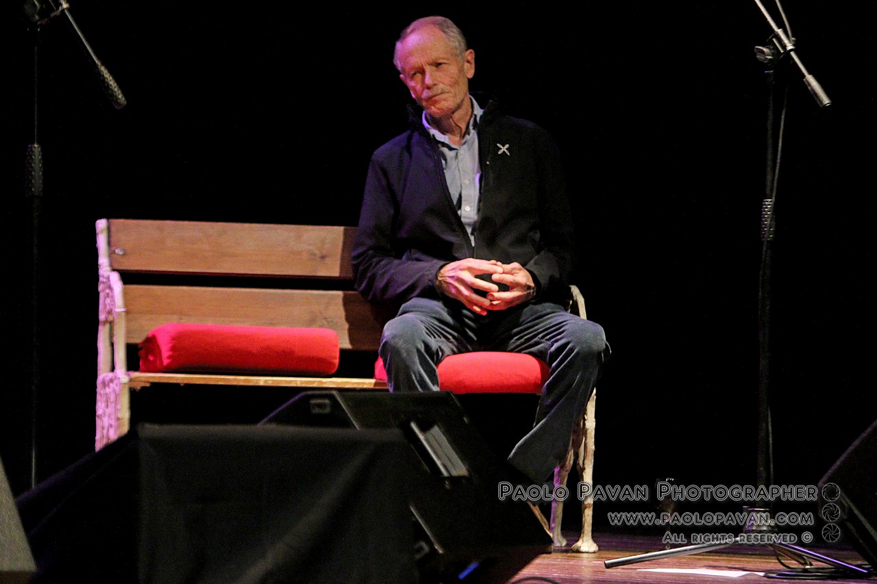 La musica, la lingua universale. Quella che rende indelebili e indimenticabili anche parole sciocche. La musica che rende pronunciabili anche parole che non si potrebbero dire altrimenti.E inizia così il viaggio dell’autore e del pubblico. Tra le sue emozioni e il suo vissuto. Tra le sue tragedie e le sue battaglie. Sempre misurato, spesso divertente. Tra storia e stretta attualità. De Luca parla e non smetteresti di ascoltarlo, ma sa farsi in qualche modo da parte, quando è ora della musica. Si siede sulla panchina, osserva, annuisce, canta tra sé, lontano dal microfono.
