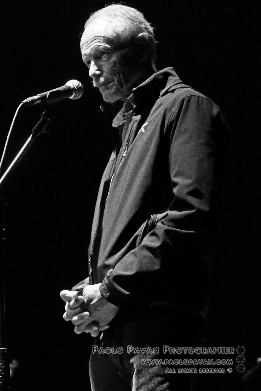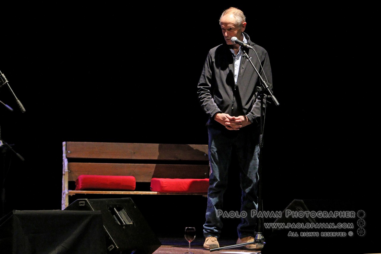 La musica, la lingua universale. Quella che rende indelebili e indimenticabili anche parole sciocche. La musica che rende pronunciabili anche parole che non si potrebbero dire altrimenti.E inizia così il viaggio dell’autore e del pubblico. Tra le sue emozioni e il suo vissuto. Tra le sue tragedie e le sue battaglie. Sempre misurato, spesso divertente. Tra storia e stretta attualità. De Luca parla e non smetteresti di ascoltarlo, ma sa farsi in qualche modo da parte, quando è ora della musica. Si siede sulla panchina, osserva, annuisce, canta tra sé, lontano dal microfono.