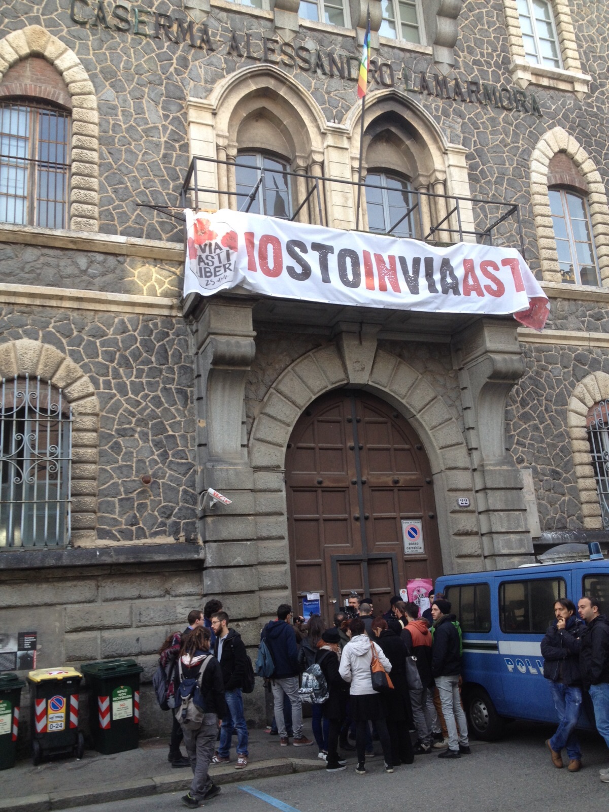 E’ in corso da questa mattina lo sgombero da parte della polizia della Caserma di via Asti a Torino. La struttura, che è di proprietà della Cassa Depositi e Prestiti, è occupata da mesi da alcune famiglie, appoggiate dalle associazioni Terra del Fuoco e Comitato di via Asti. A loro si sono aggiunti da un paio di settimane alcune famiglie rom sgomberate dal campo nomadi di Lungo Stura Lazio.