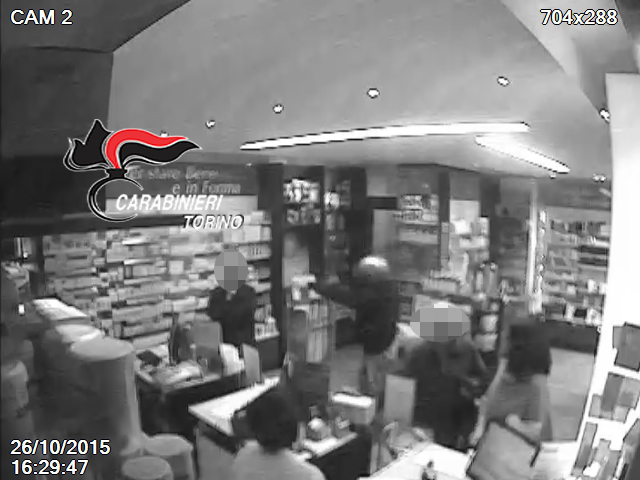 La banda è sospettata di aver messo a segno anche altre due rapine, sempre nella stessa farmacia, il 21 agosto e 26 ottobre scorsi.