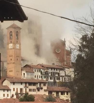 I Vigili del Fuoco hanno transennato le vie di accesso al castello e al centro paese: la chiesa parrocchiale dovrà ancora una volta essere dichiarata inagibile.