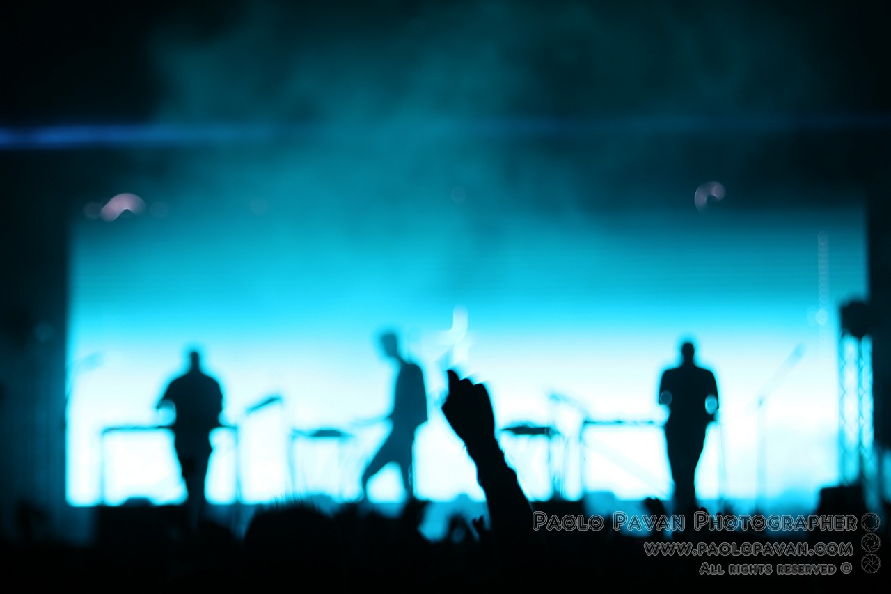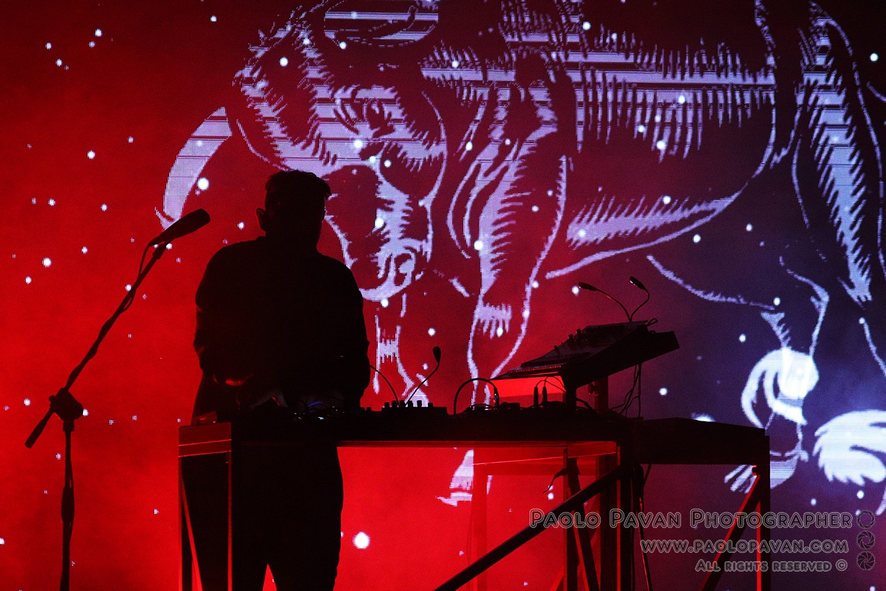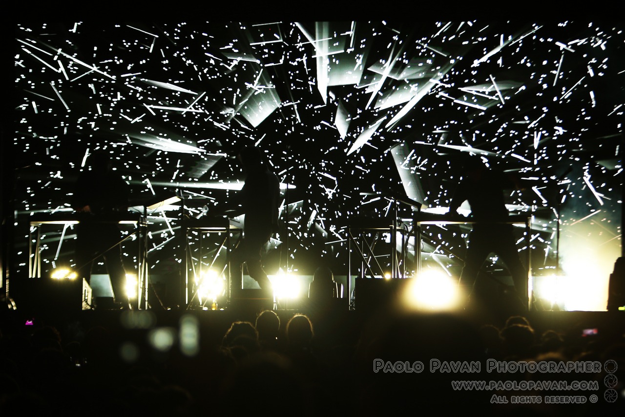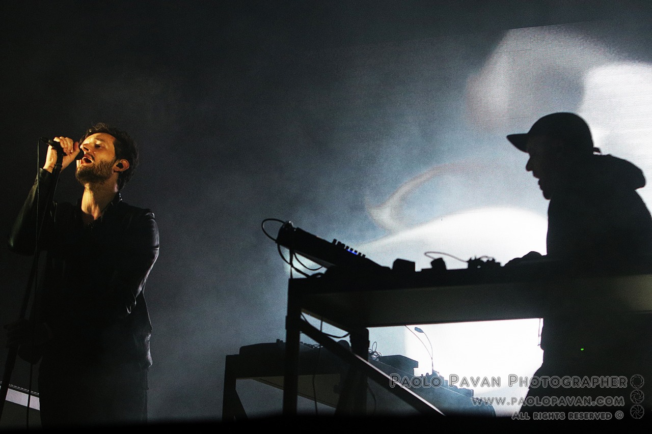In particolare è apprezzabile la completezza audio e visuale dello show, dove la perfetta fusione dei suoni, parti cantate e immagini, supera il concetto stesso di classico show, rendendo possibile la materializzazione del progetto Moderat su di un palco, facilitato dall’acustica e dalla bellezza della location scelta.