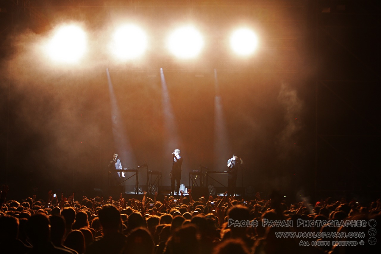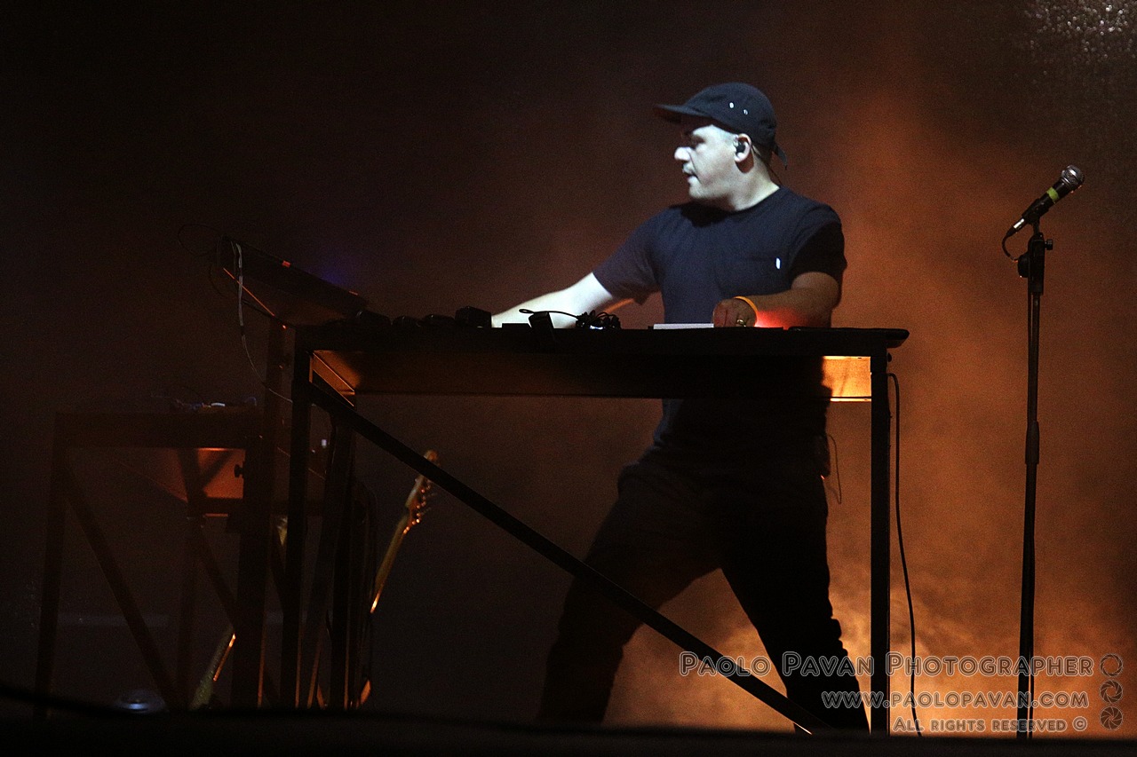 In particolare è apprezzabile la completezza audio e visuale dello show, dove la perfetta fusione dei suoni, parti cantate e immagini, supera il concetto stesso di classico show, rendendo possibile la materializzazione del progetto Moderat su di un palco, facilitato dall’acustica e dalla bellezza della location scelta.