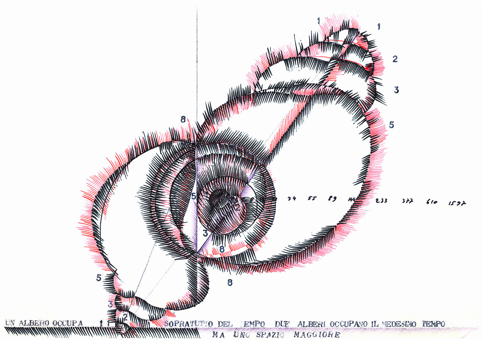 Il percorso racconta di equilibrio collegato alla forma della spirale, di matematica e di tempo, di progressione numerica e produttiva. Lo spettatore si trova immerso in un paesaggio costituito da forme, figure e parole, nel tentativo di riorganizzare il binomio cultura – natura.