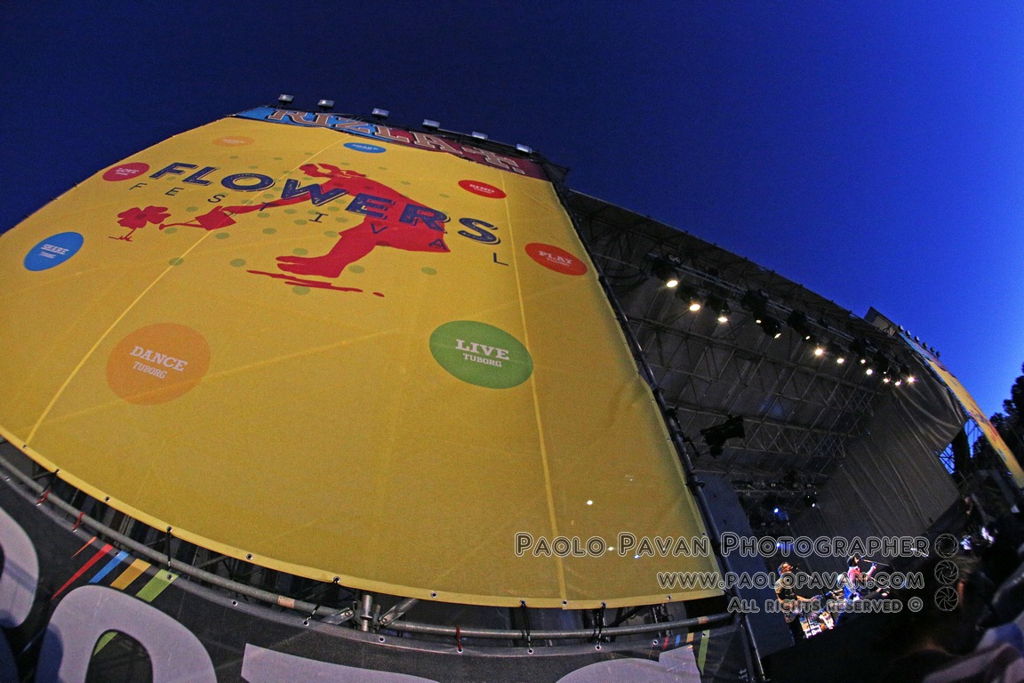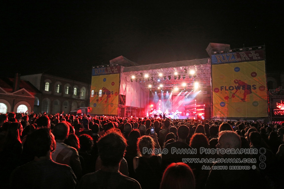 Grande pubblico al Flowers Festival per il ritorno nelle nostre lande di Max Gazzè con il Maximilian Tour. L’artista romano, ormai consacrato sulla scena dell’indie pop nostrano, si presenta nella sua nuova dimensione, grande show, grande presenza sul palco, un deciso scatto dalla realtà del club a quella dei grandi festival e palazzetti.
