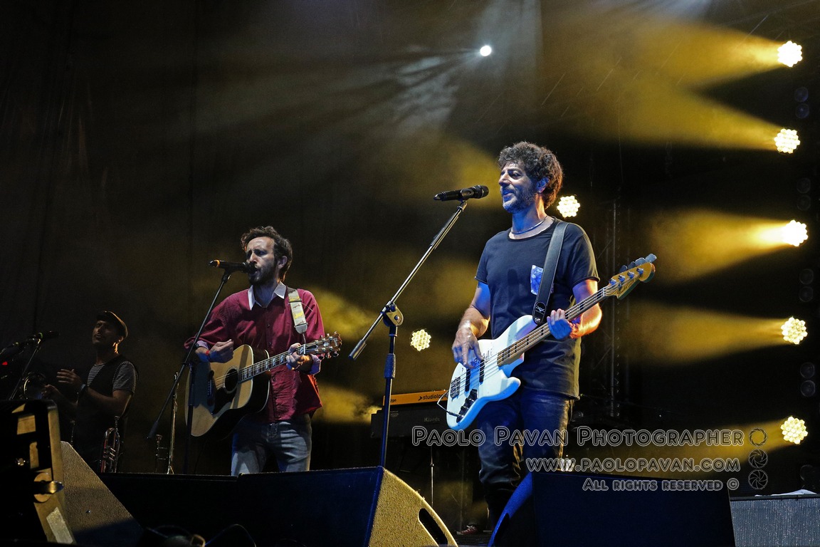 Ma la serata, resa ancora più gradevole da un abbassamento delle temperature, è iniziata subito forte con Mao, al secolo Mauro Gurlino, musicista e artista di lungo corso della scena torinese, tornato ad esibirsi, lui che ha all’attivo la sua bella carriera più che ventennale e che vanta una collaborazione di lunga data con Max Gazzè, bellissima la loro “Colloquium Vitae”, verso la fine del concerto, quando Mao ha raggiunto Max sul palco, per un bel momento di musica e complicità.