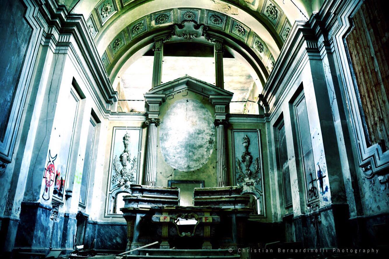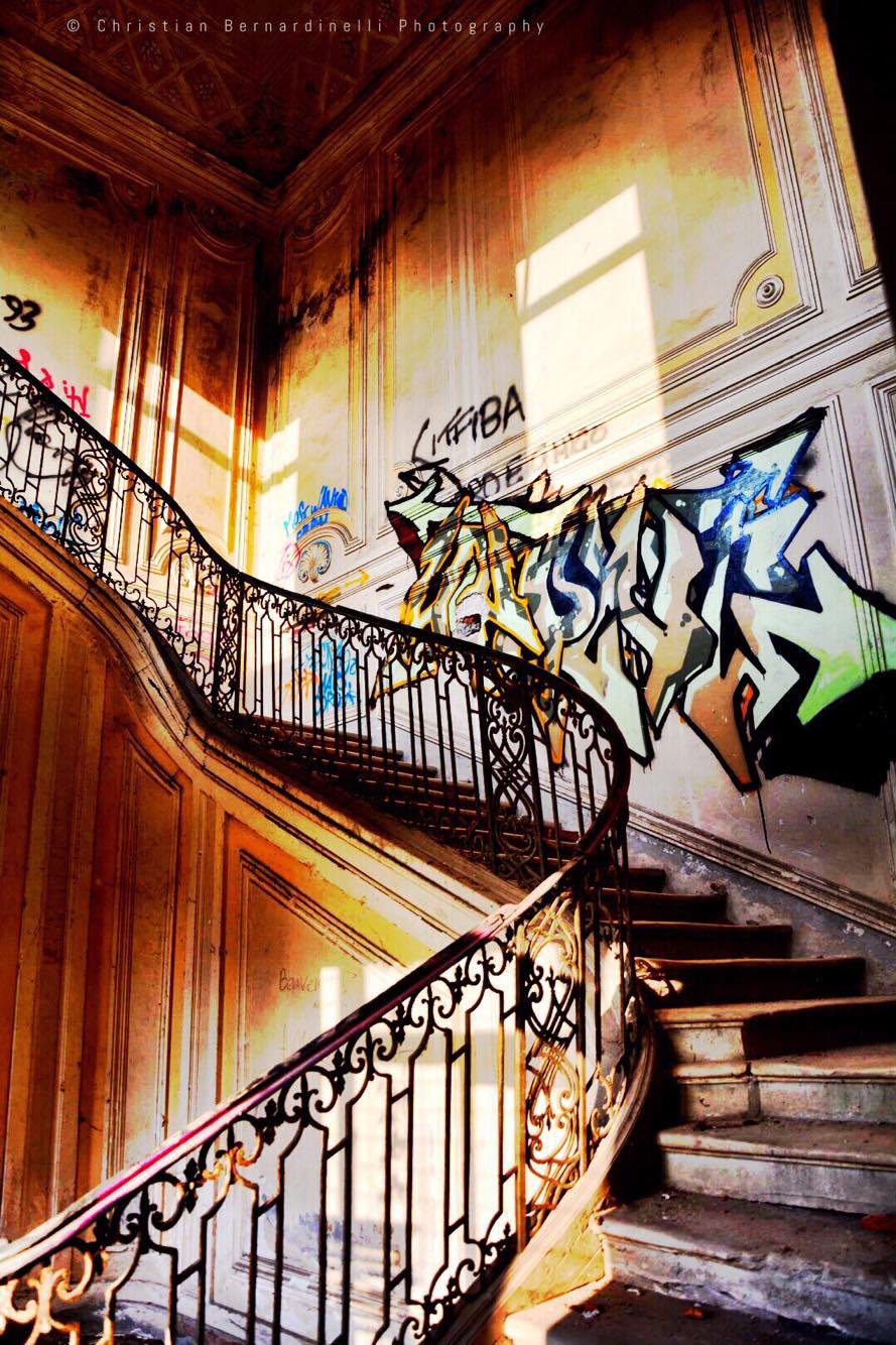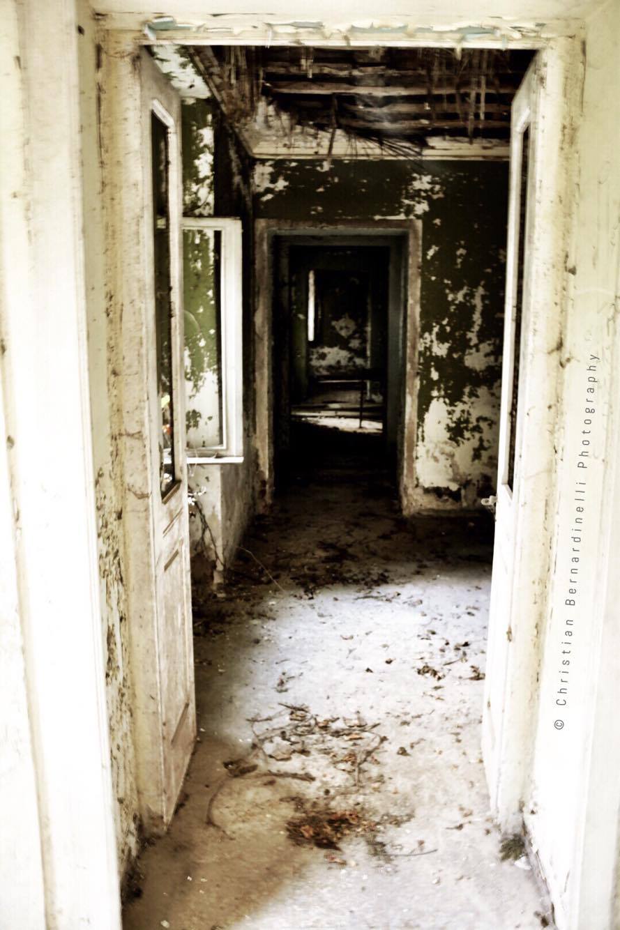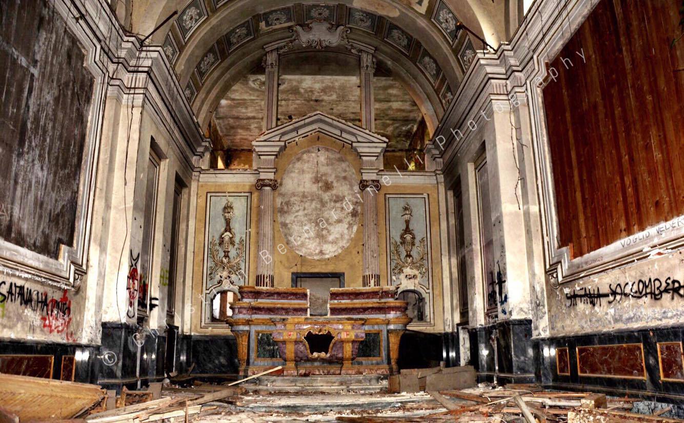 Oggi è una distesa di macerie, le stanze mostrano i segni dell’antico splendore ma dentro, come mostrano le foto di Christian Bernardinelli, c’è solo devastazione.