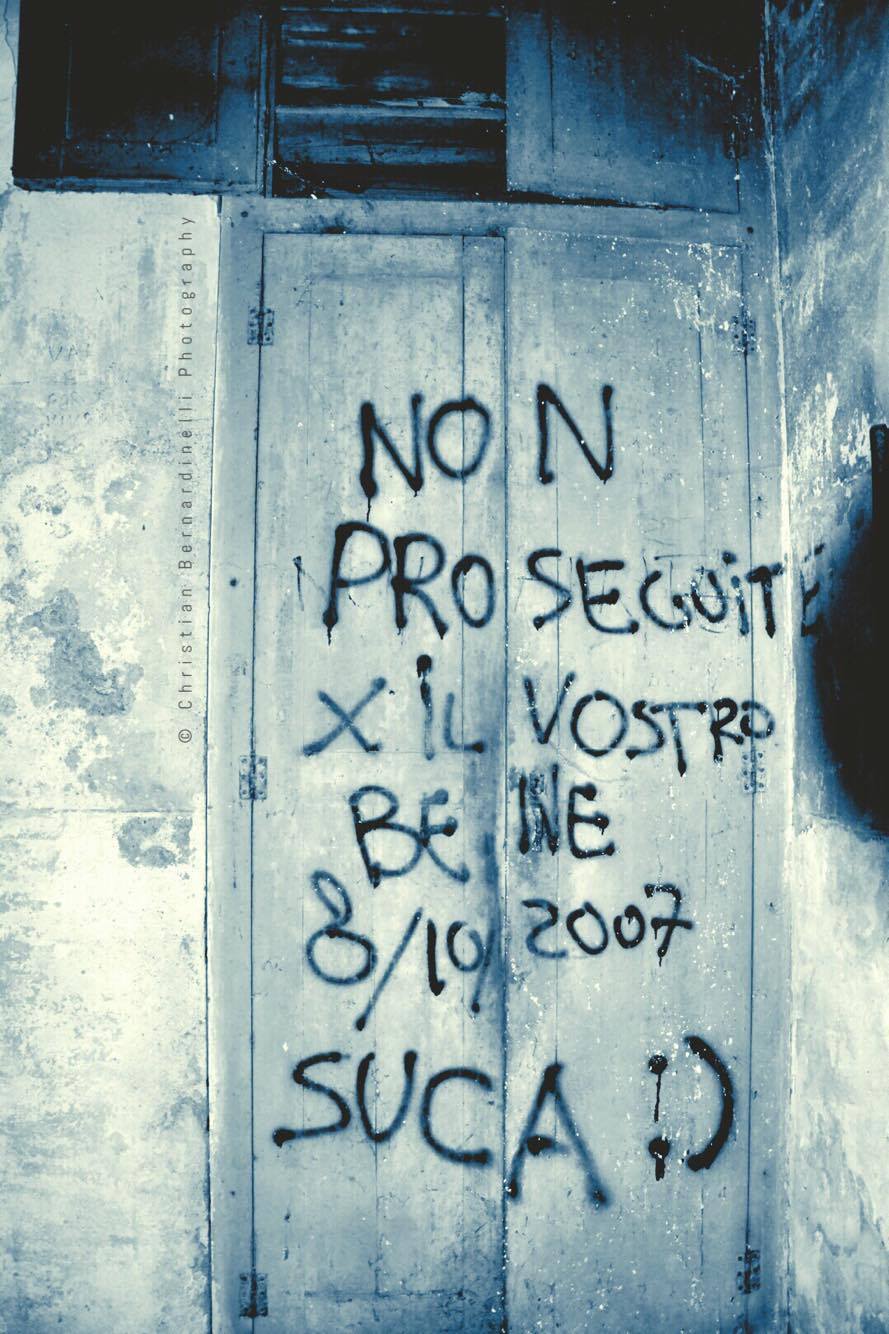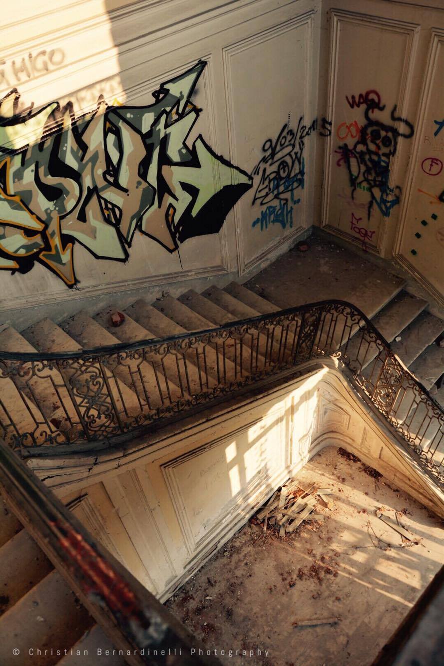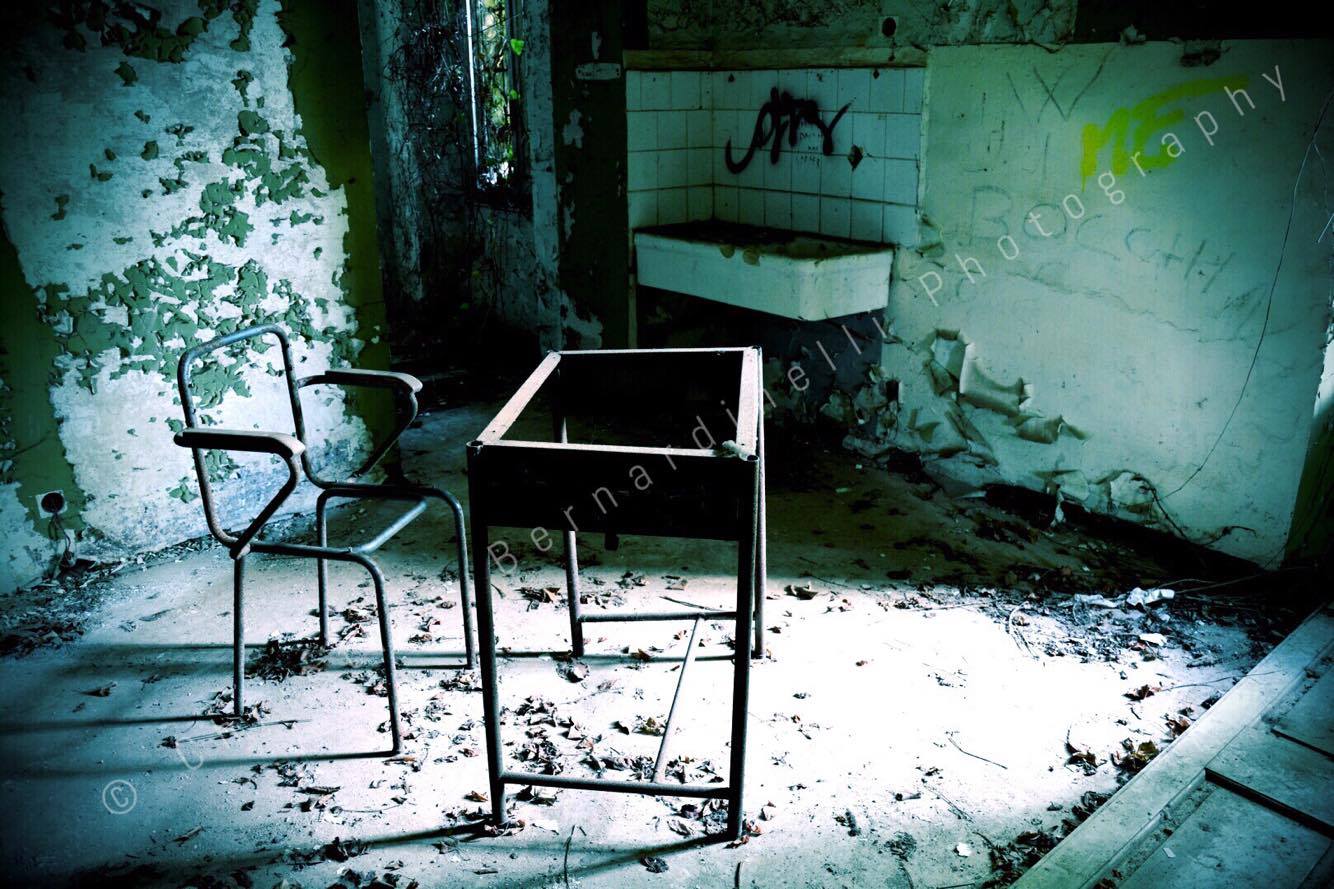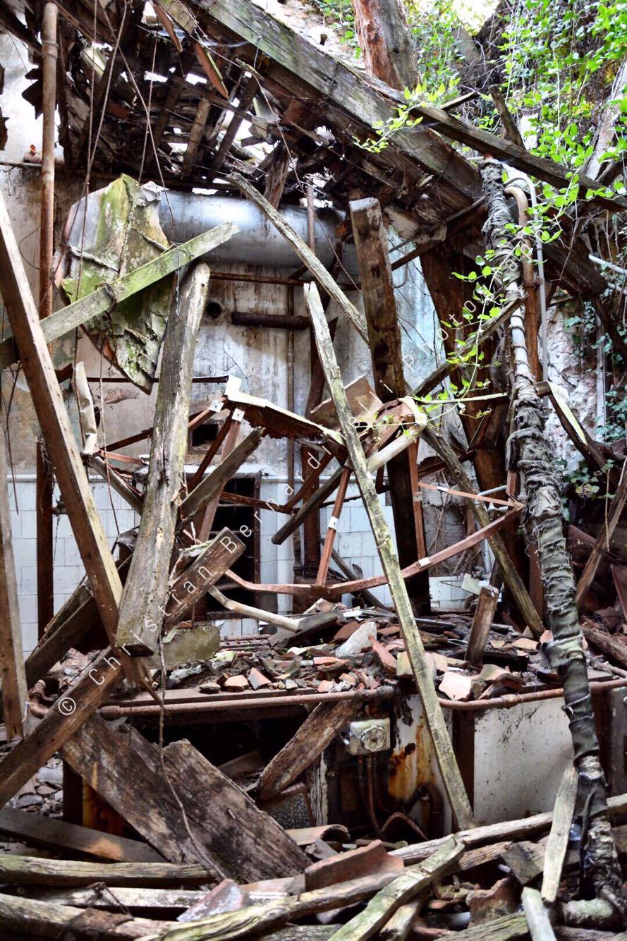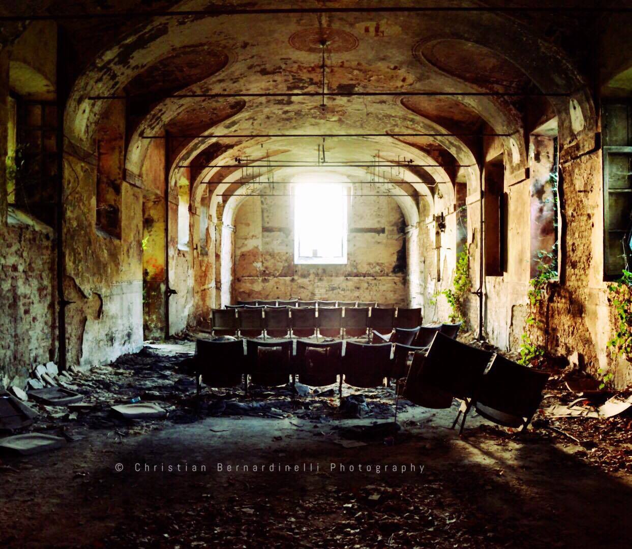 Oggi è una distesa di macerie, le stanze mostrano i segni dell’antico splendore ma dentro, come mostrano le foto di Christian Bernardinelli, c’è solo devastazione.