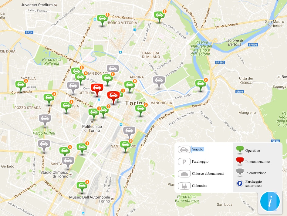 A Torino arriva dal 24 ottobre il car sharing eletttrico per il grande pubblico offerto da Bluetorino, la società di Vincent Bollorè  ha già portato il servizio a Parigi, Lione Bordeaux e Indianapolis. Ora per partire in Europa oltre il confine francese si è scelto Torino e dopo il lancio primaverile si fa sul serio da fine ottobre con 23 stazioni con 60 automobili per arrivare a 250 colonnine di ricarica e 150 Bluecar, con un obiettivo a regime di 220 stazioni e 400 automobili e 700 colonnine per ricarica. Dopo Torino sarà la volta di Londra e poi di Singapore.