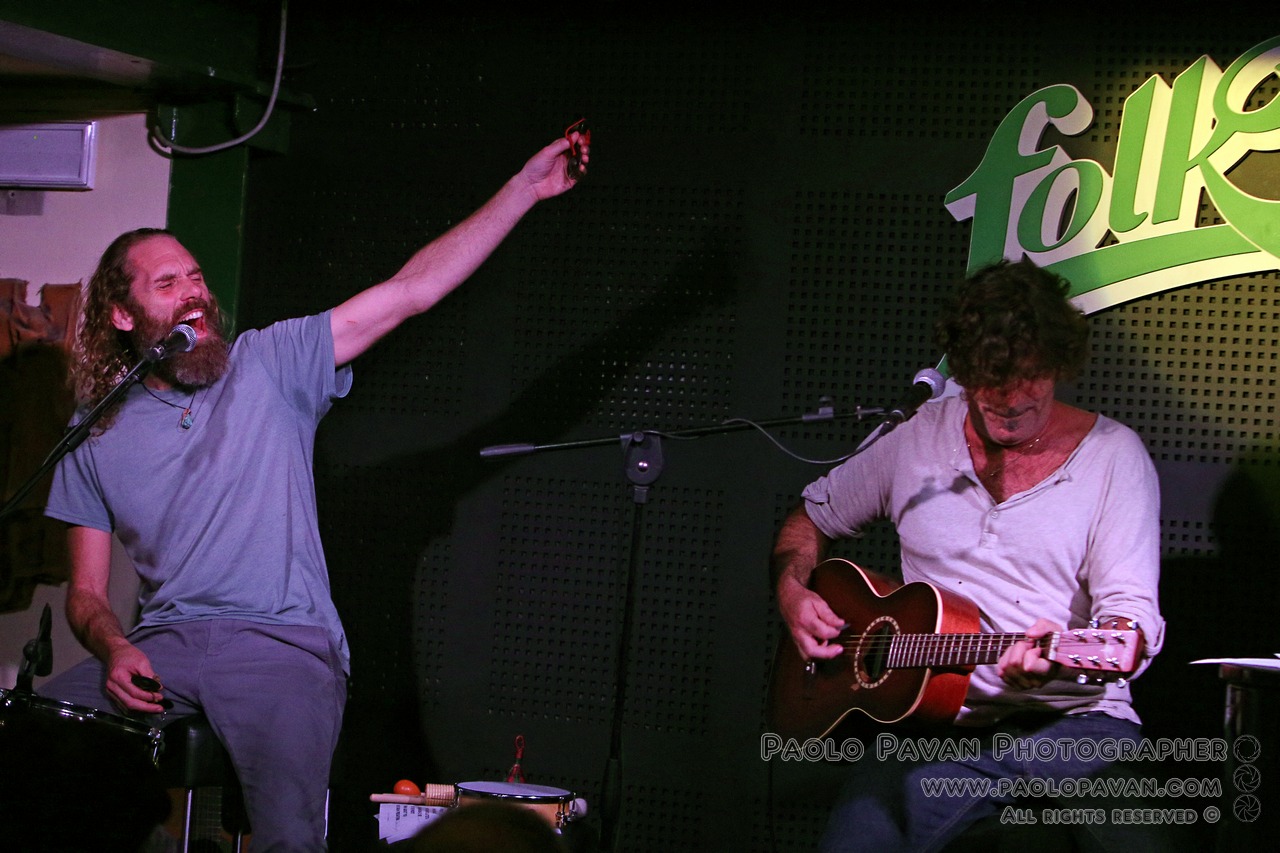 Spazio ancora per Jamie e per divertenti cover, “Ruby Tuesday” degli Stones, con Bobo che imita Jagger e “Psycho Killer” dei Talkin Heads, bellissime e arruffate come solo Rondelli le può rendere, che comunque si fa apprezzare per la sua chitarra blues e alcuni virtuosismi davvero notevoli. Chiude Jamie con un omaggio a Bob Dylan, appena premiato con il Nobel con una struggente “I shall be released” e Bobo a fargli il verso e a cercare di trovare un modo per salutare il pubblico. Quasi tre ore di spettacolo, che sono volate con due artisti veri, in una dimensione, quella del FolkClub, che ti riavvicina alla musica, gomito a gomito, dove puoi davvero apprezzare l’artista, senza filtri di sorta.