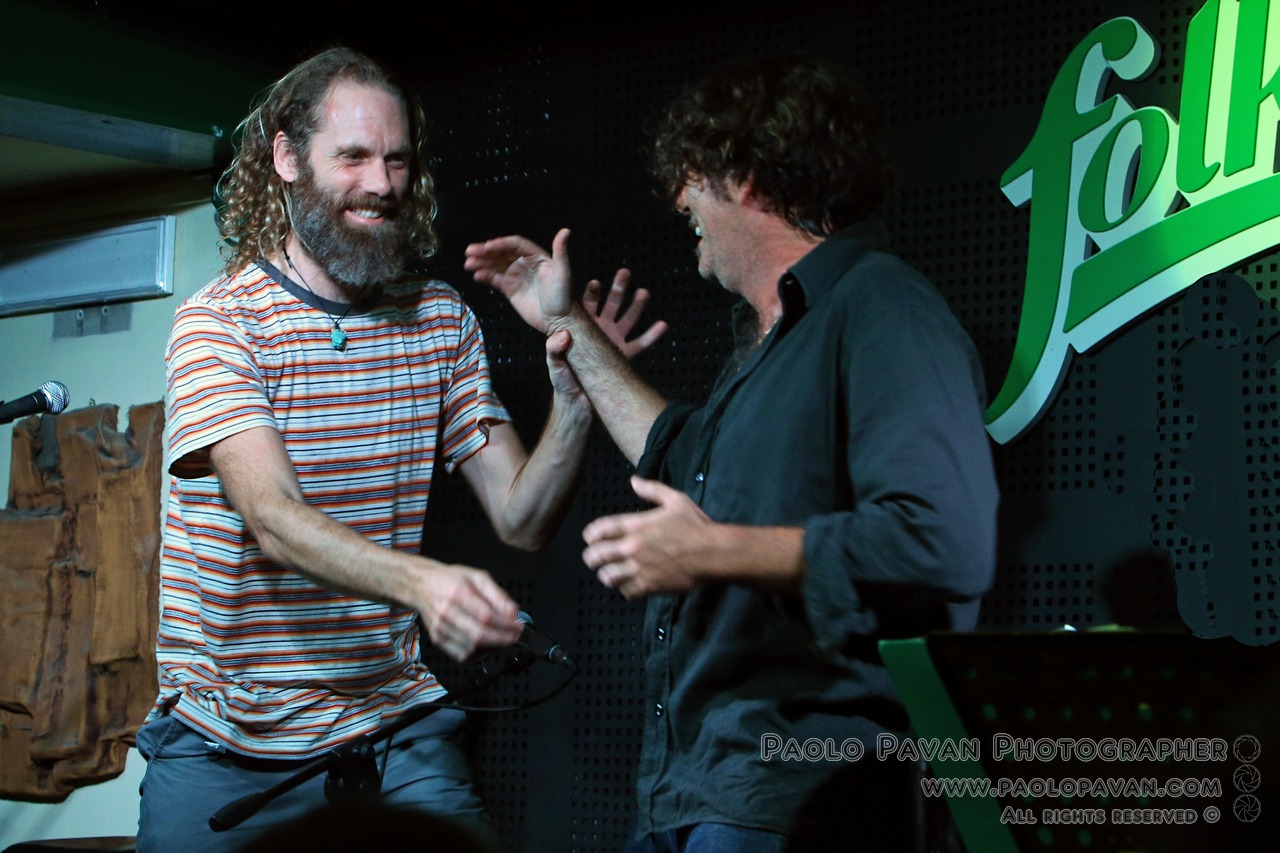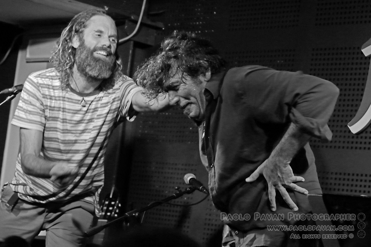 Noi abbiamo invece attesto uno degli eventi più interessanti ed originali per farci un salto di persona, ovvero l’incontro fra due artisti geniali ed istrionici, due veri abituè di casa al FolkClub, quello da loro definito come un “mostro mitologico”, il BOBOCEPHUS, a metà strada tra Bocephus King e Bobo Rondelli. Bocephus King, nome d’arte di Jamie Perry, straordinario e poliedrico cantautore canadese, modi gentili, voce ed espressione intensa, simpatia istintiva, costantemente alla ricerca del bello e del vero nel suo percorso musicale. Difficile etichettarlo, tra country, blues, soul, vaudeville, swing, motown, roots, Bocephus si muove un po’ tra tutti, senza fermarsi del tutto su uno in particolare, anzi, interpretandolo in base alla propria sensibilità ed esperienza. Artista di nicchia, senza dubbio, noto in Italia per la sua partecipazione al Premio Tenco, è uno dei pochi ad aver superato le regole del FolkClub, che impediscono allo stesso artista di esibirsi due anni di seguito, grazie anche a due “secret show” tenutisi negli ultimi due anni.