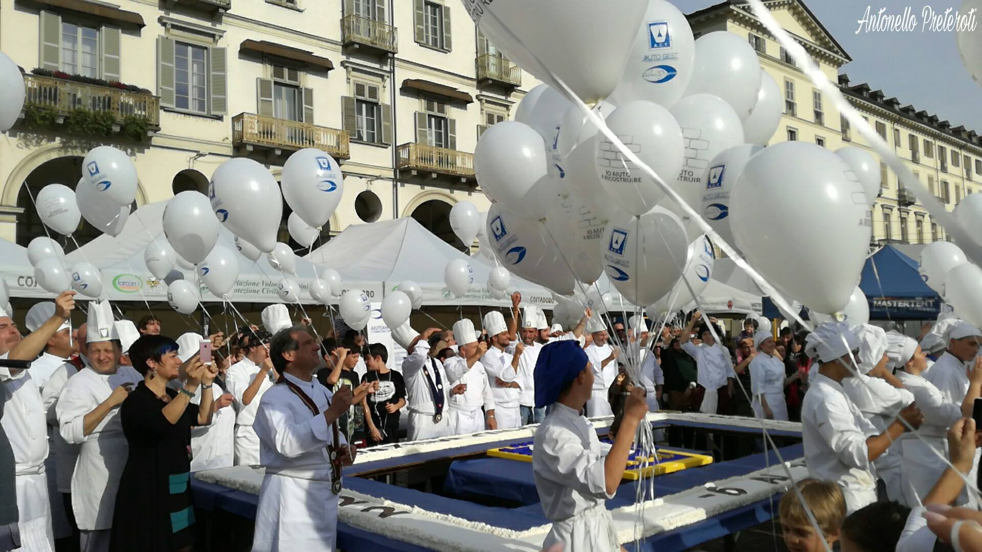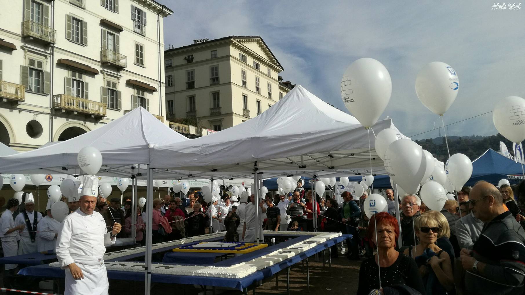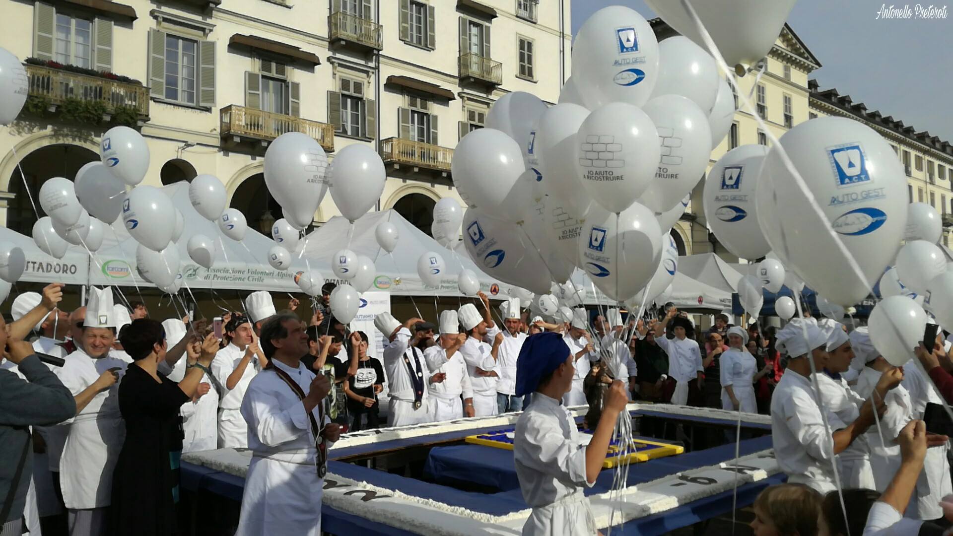 Una megatorta da 1000 porzioni per raccogliere fondi per l’istituto alberghiero di Amatrice. L’occasione era la 12esima Festa nazionale dei cuochi e delle cuoche di Torino, l’intento, invece, quello di raccogliere fondi per la ricostruzione dell’Istituto alberghiero di Amatrice, andato distrutto lo scorso 24 agosto.