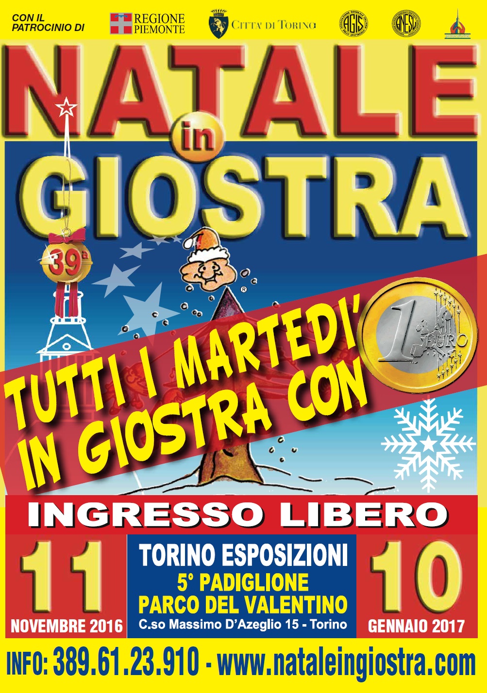 Un atteso ritorno. Da venerdì 11 novembre fino a martedì 10 gennaio nel quinto Padiglione di Torino Esposizioni torna con la 39esima edizione Natale in Giostra. Organizzata dall’Associazione Nazionale Esercenti Spettacoli Viaggianti e l’Associazione Generale Italiana dello Spettacolo, la Manifestazione, unica nel suo genere sul territorio italiano, è un Luna Park composto da circa 50 Attrazioni indirizzate alle famiglie e collocate all’interno di un’eccellente struttura architettonica, il quinto Padiglione di Torino Esposizioni dove, per l’occasione, le auto lasciano il posto all’utilizzo ludico in favore dei cittadini: circa 60 giorni in cui migliaia di famiglie potranno divertirsi e socializzare in un ambiente controllato.