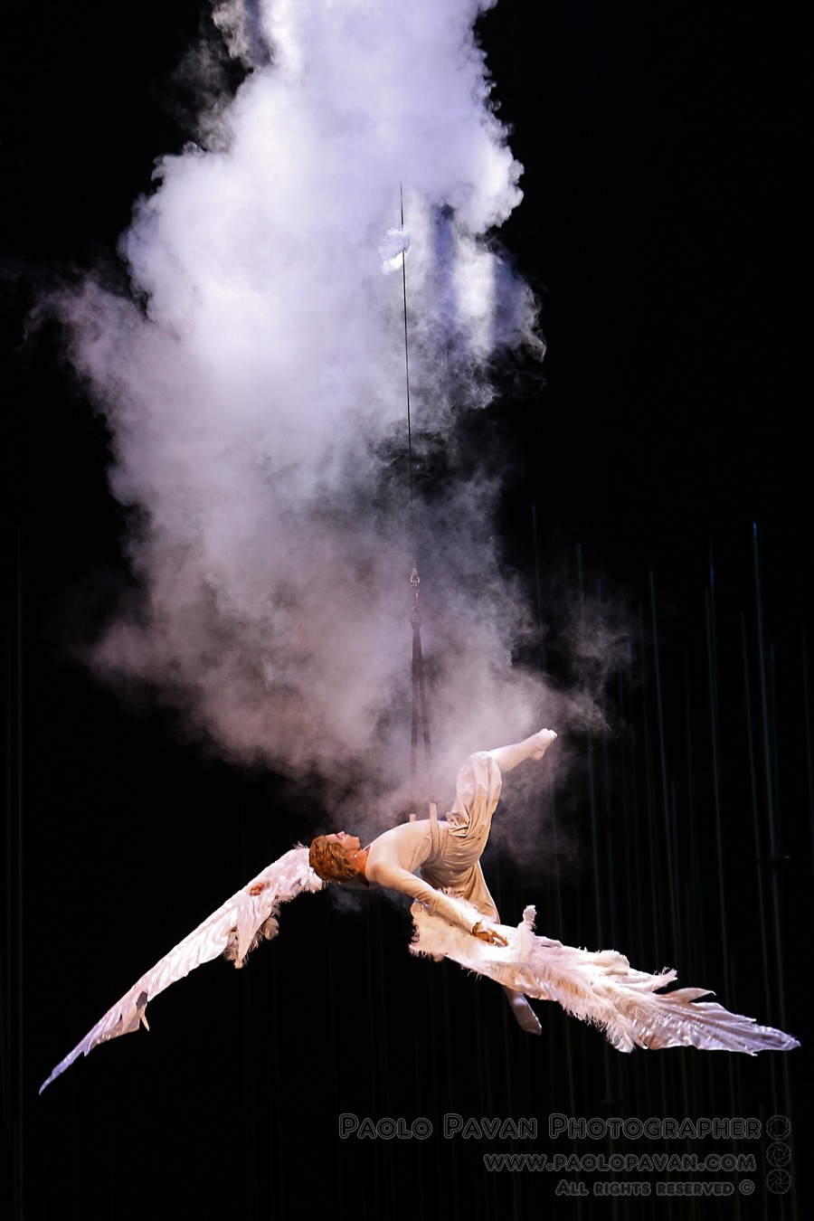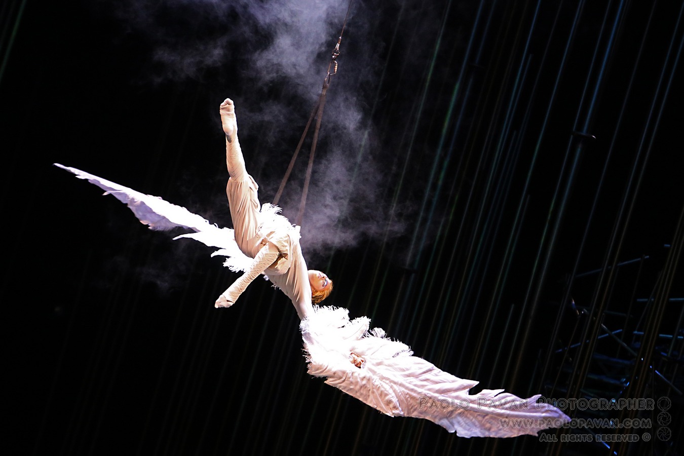 Lo spettacolo che inizia con le magiche creature che abitano questa foresta fantastica, vede discendere dal cielo giovane uomo solitario, una sorta di angelo caduto in volo. Ha così inizio la storia, in cui quest’uomo paracadutato all’interno di questa magica foresta, in un mondo caleidoscopico popolato da creature fantastiche, in cui il protagonista intraprende un’avventura straordinaria in un luogo ai confini del tempo, dove tutto è magico e dove tutto è possibile. Un cammino per una vita nuova e ritrovata, attraverso i misteri del mondo e della mente.