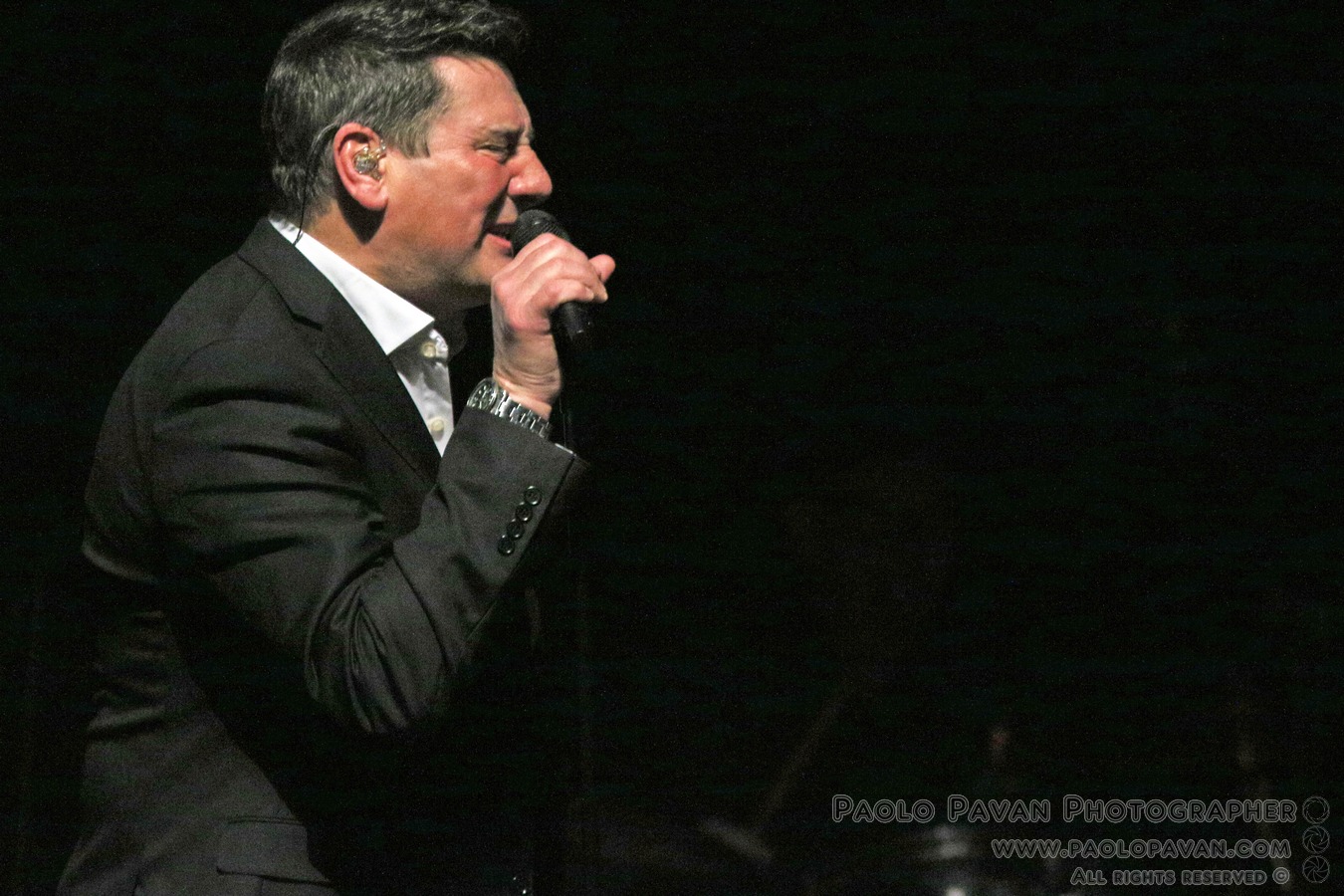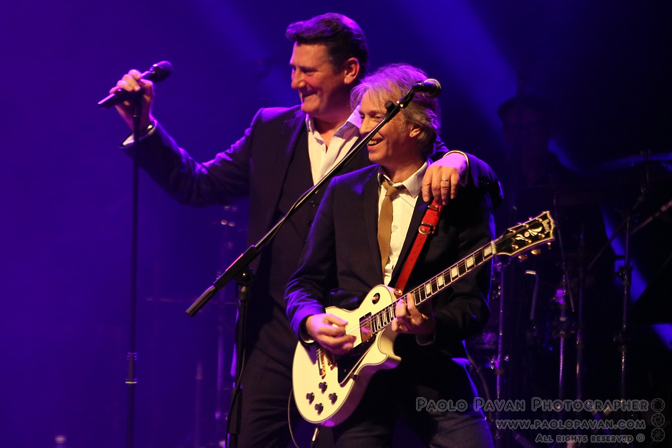 Puntualissimo spacca subito la serata con un omaggio da brividi a David Bowie, con una bellissima versione di “Life on mars” a cui segue il ritmo di “To Cut A Long Story Short” ed è davvero difficile stare fermi sulle poltrone. Sembra di essere ad un concerto degli Spandau, pure più energico tanta è la forza della band, lo si vede nel riff di “Highly Strong”. Solo ora la serata entra nella sua prima dimensione natalizia, dove Tony esalta le sue doti da crooner (credo pochi abbiano la sua classe anche in questo campo), con due hit natalizie, “Santa Claus is coming to town” nella versione di Bruce Springsteen e “Let it snow”, che precedono “Round and round” e la storica “I’ll fly for you”. Ancora il natale con la già citata e magica “Fairy tale of new york” e “Driving home for Xmas” di Chris Rea, che sono il preludio al momento centrale del concerto, in cui l’anima pop rock e da show man di Tony prende il sopravvento. “Soul Boy” e “Only when you leave”, altro grande successo con la band, precede forse il momento più intenso della serata con uno strepitoso tris di megasuccessi, “With or without you” degli U2, “Somebody to love” dei Queen, omaggio a Freddy Mercury davvero riuscito ed in mezzo l’intramontabile ed immancabile “Through the barricades”. C’è spazio ancora per “Lifeline” e non solo, prima dei bis finali, che vedono il pubblico andare sotto il palco. “True”, eseguita con un’energia impagabile, tra un bicchiere di Jack Daniels e uno di vodka, ancora una spruzzata di Natale “Have yourself a merry little Xmas” e la divertentissima “Shake up Xmas”, prima di “Gold” super successo targato Spandau e gli auguri finali sulle note della classicissima “White Xmas”.