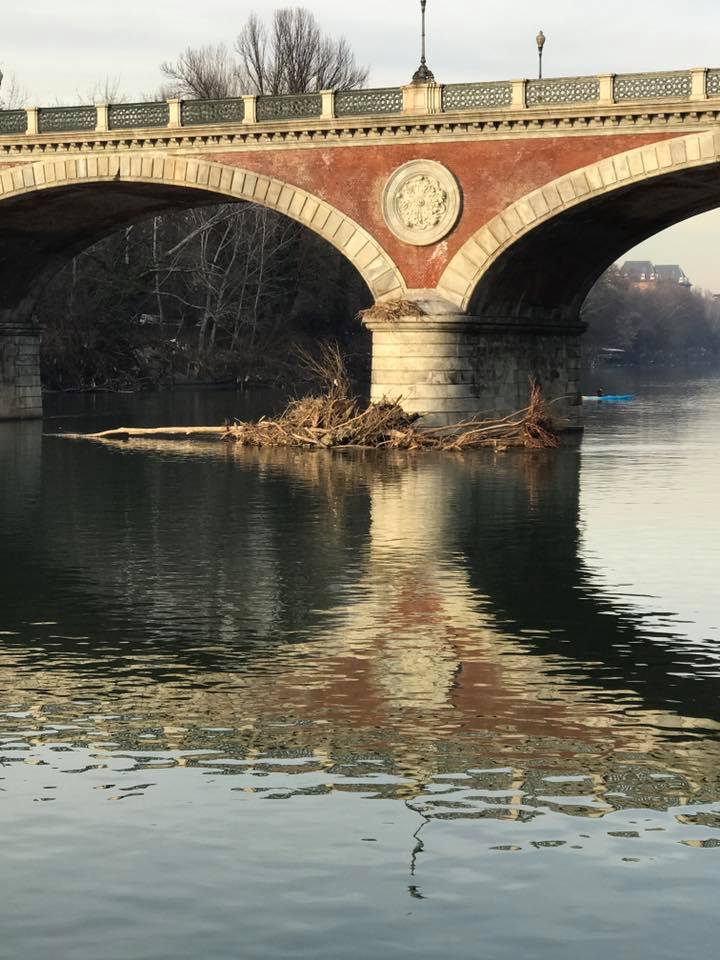 Il materiale ammessato sui ponti è estremamente pericoloso in caso di una nuova piena, perchè potrebbe fare da diga molto velocemente. I rami, le sterpaglie e un’incredibile quantit di rifiuti che si sono accatastati sugli alberi ai lati del fiume e sulle ringhiere dei percorsi ciclabili e camminabili sono pericolosi perchè potrebbero tornare in acqua e sono inoltre uno spettacolo indecoroso.