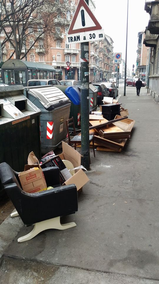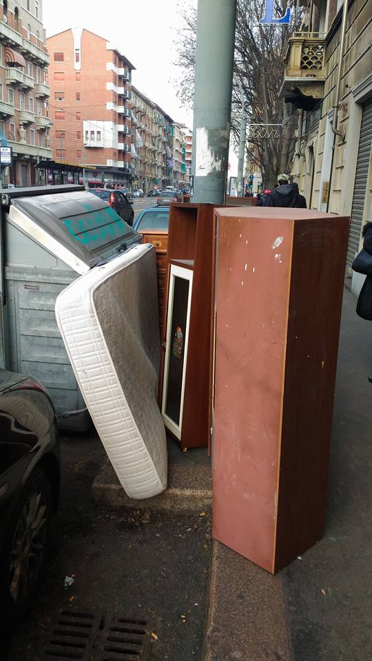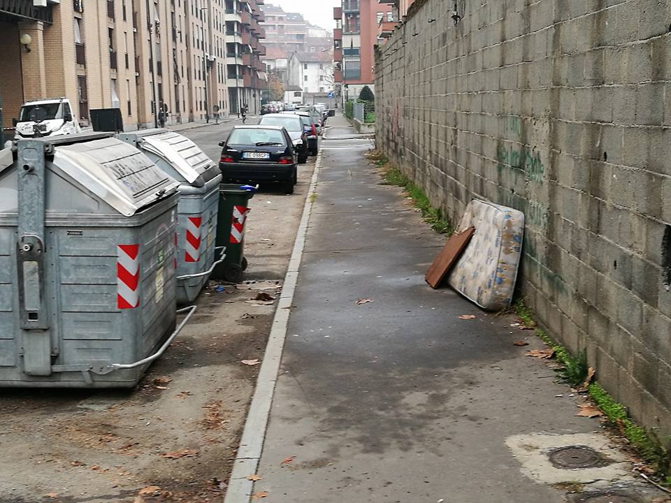 Si susseguono quotidianamente infatti foto che denunciano l’incivilta’ degli abitanti del quartiere, in particolar modo l’abitudine di buttre accanto ai cassonetti, ma anche direttamente per strada, rifiuti ingombranti per i quali sarebbe invece stato il caso di chiamare i responsabili dell’Amiat per il conferimento.