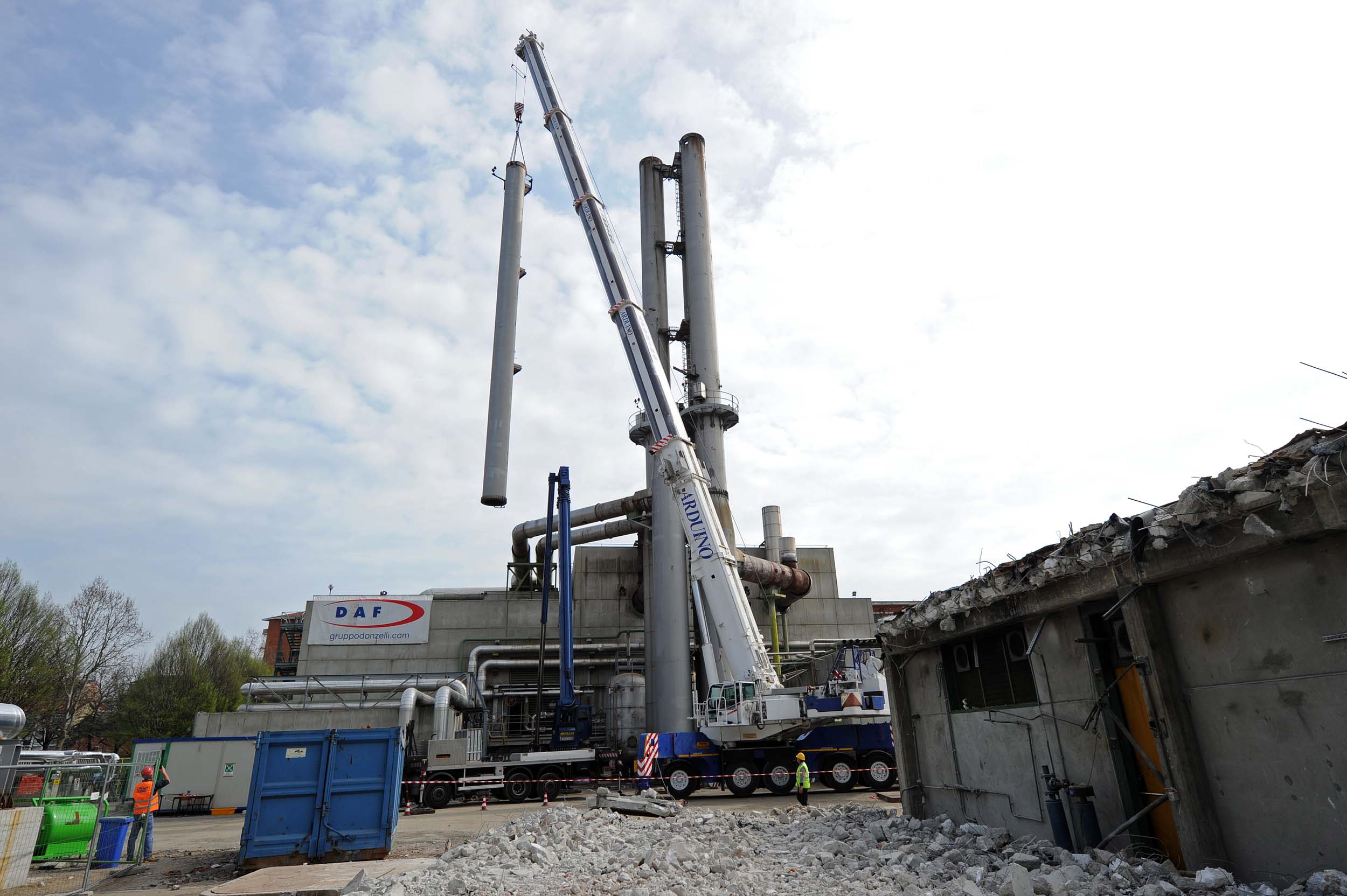 E’ iniziato lo smontaggio dei quattro camini della centrale termoelettrica di Mirafiori Nord, di Corso Salvemini 5 a Torino, per poi passare gradualmente allo smantellamento delle restanti parti dell’impianto.