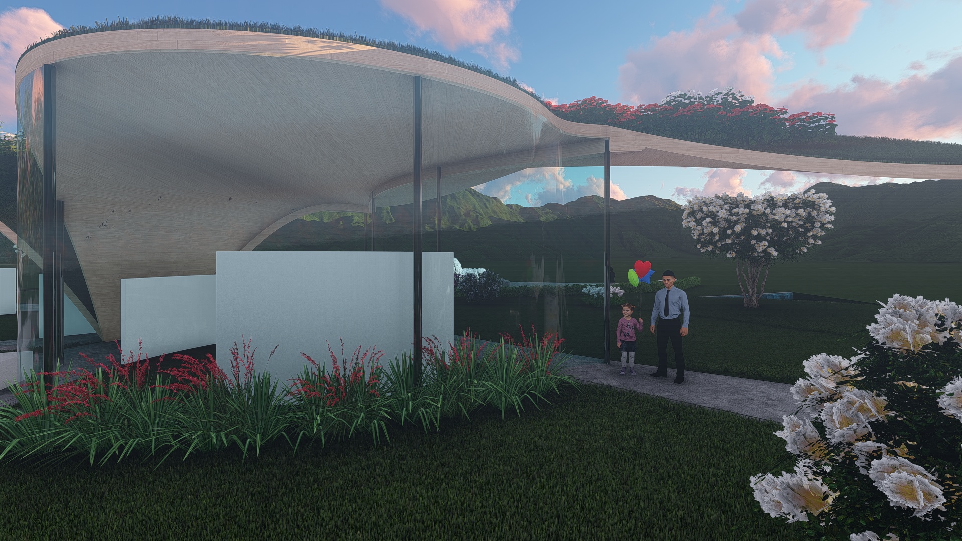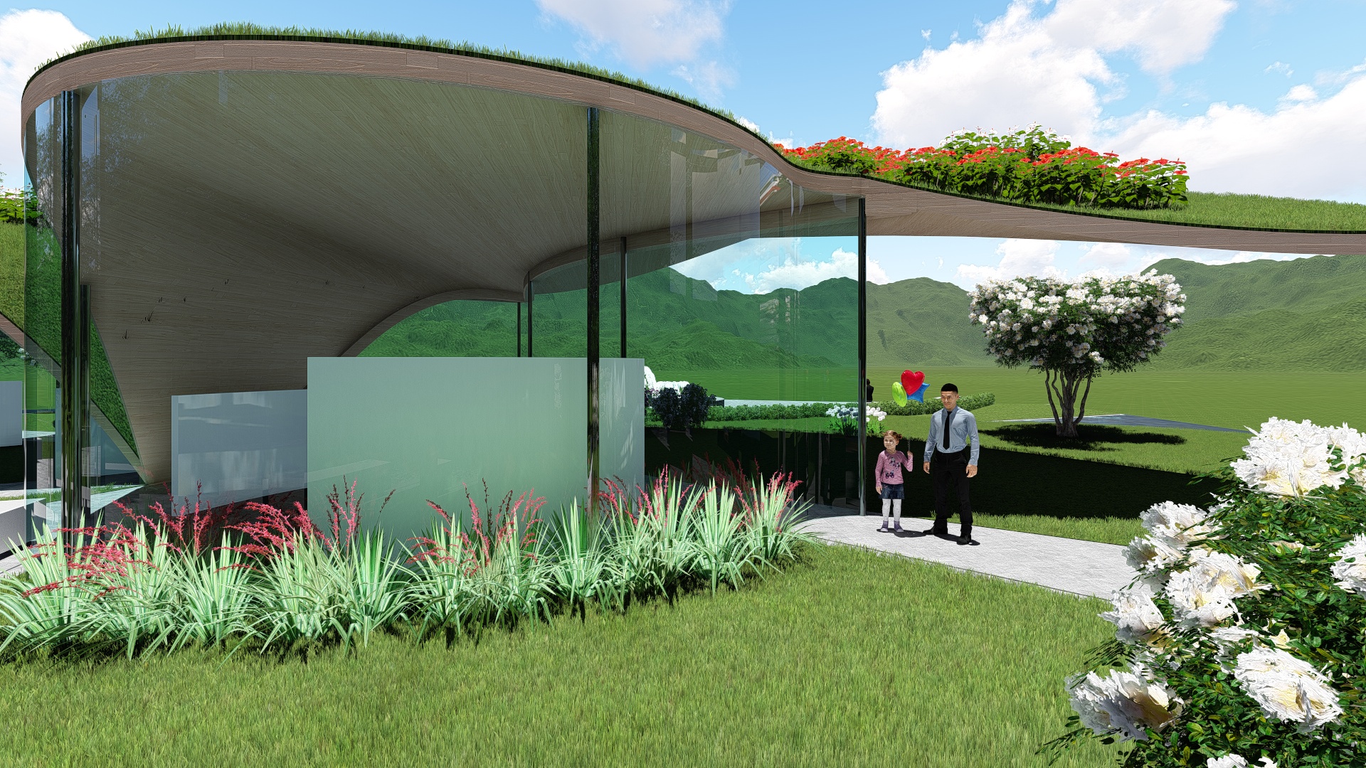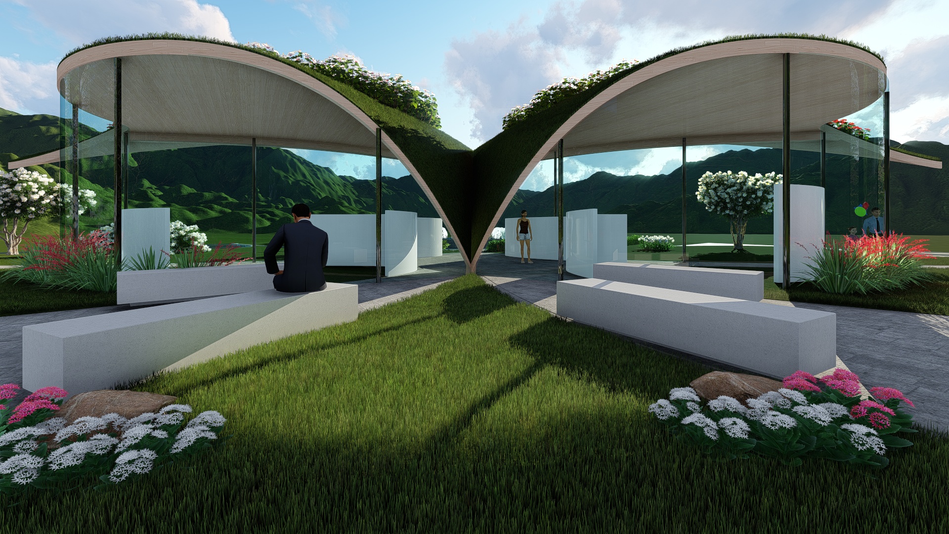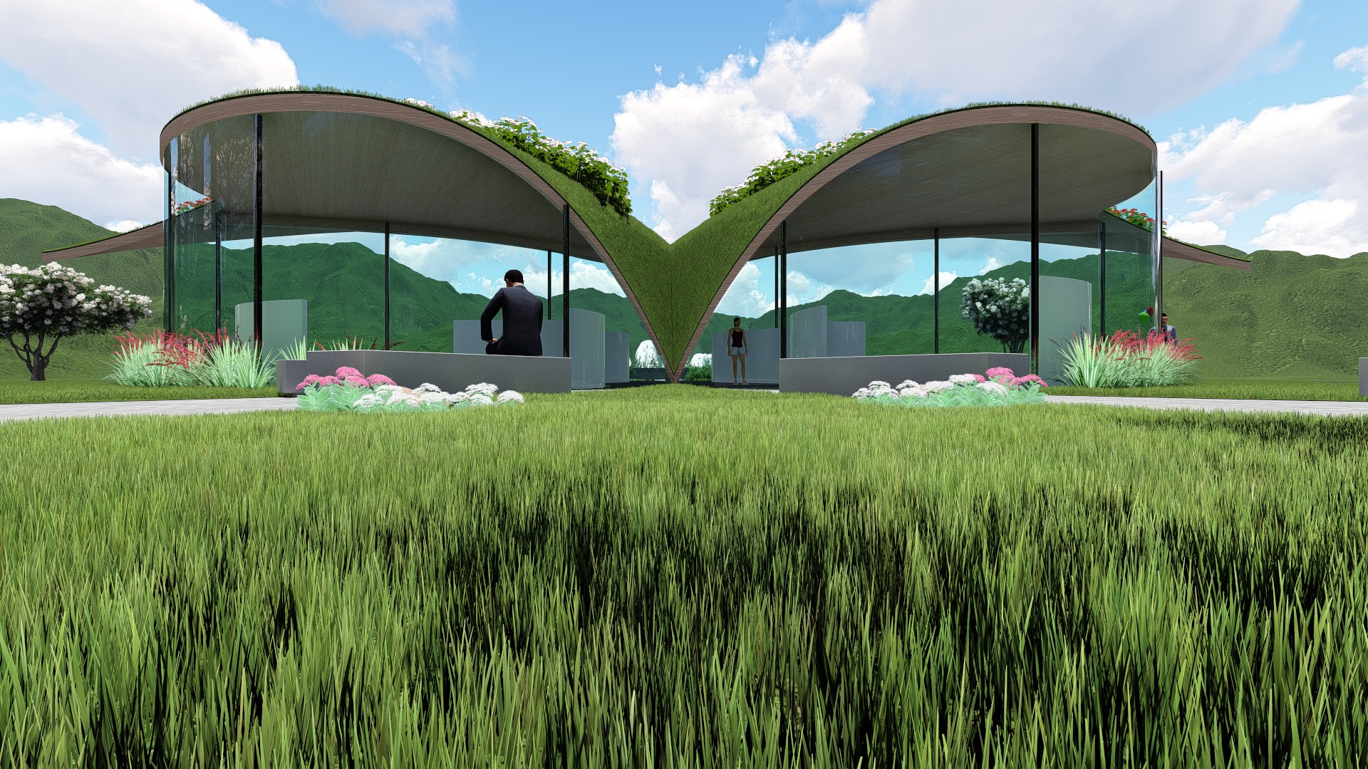 La struttura, ‘BUTTERFLY’, è realizzata con ali variopinte nell’atto di appoggiarsi sulla terra. Le ali ‘colorate’ sono date dal giardino che sovrasta la struttura (sito sul tetto terrazzato), dove l’architetto farà piantare molte delle coltivazioni del territorio nostrano: dai prodotti dell’orto ai più svariati frutti come la vite, le fragole, le mele e tanto altro, le cui sfumature varieranno al passare dei mesi (natura in continuo trasformazione).