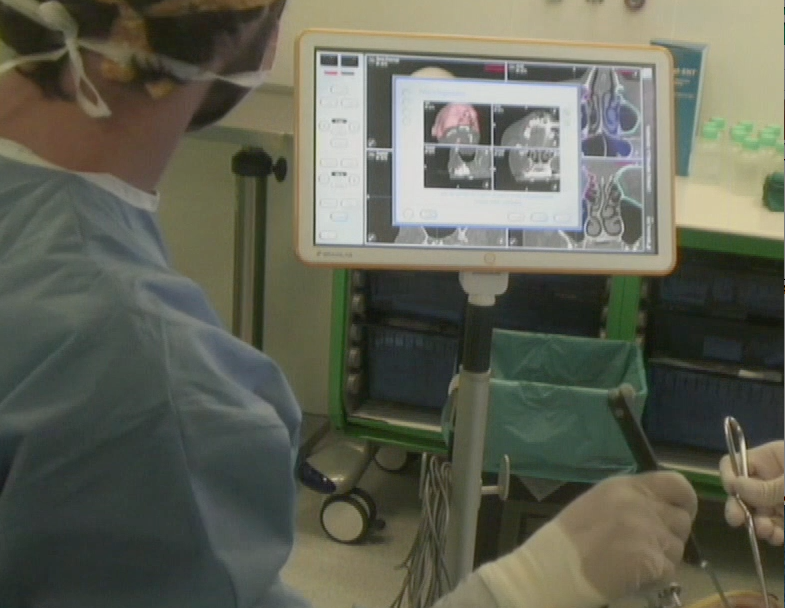 La navigazione intraoperatoria, permettendo di visualizzare la reale posizione anatomica durante l’intervento, consente di aumentare sensibilmente la sicurezza intraoperatoria data la complessa regione anatomica di intervento ricca di strutture neurovascolari.