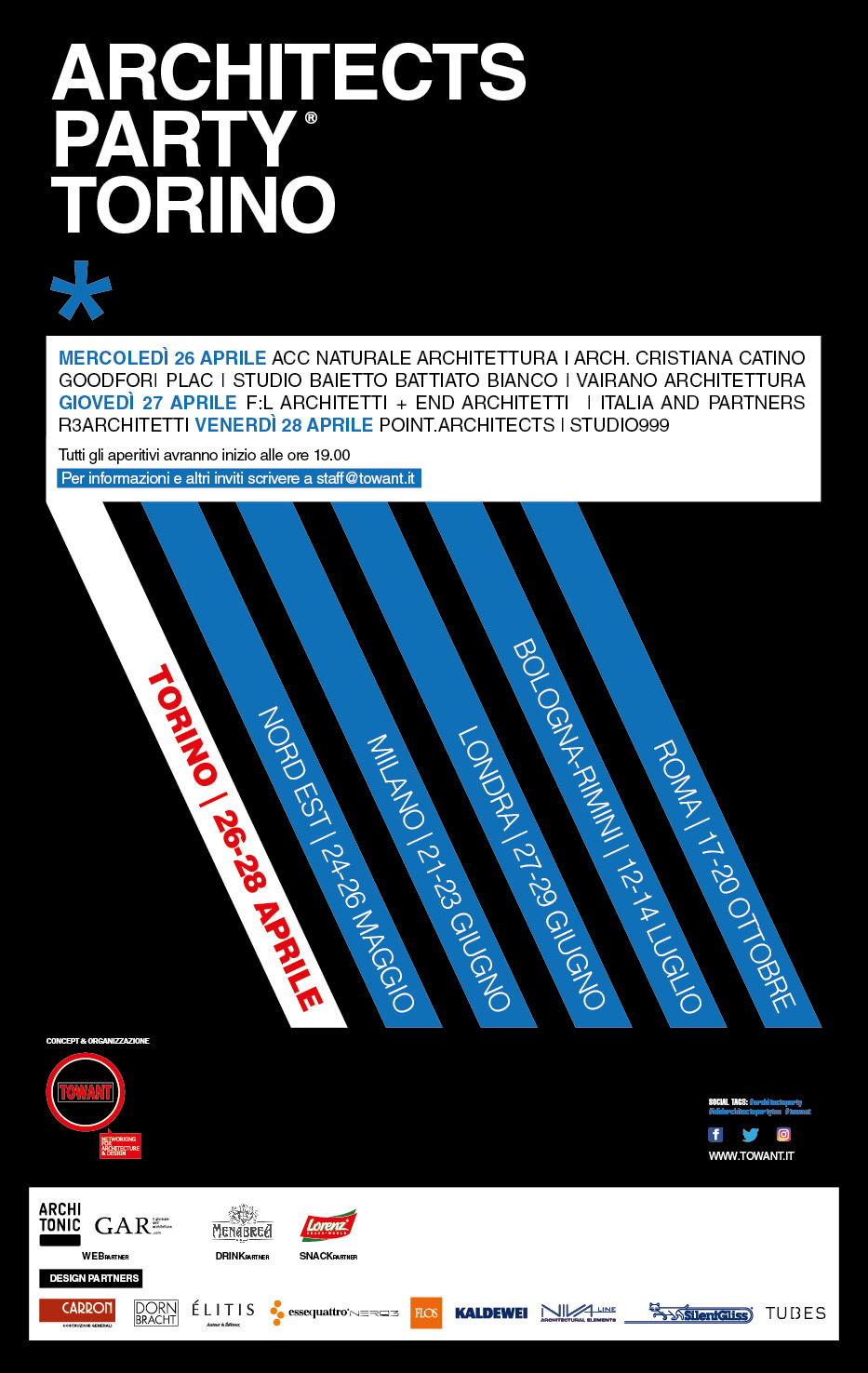 ArchitectsParty coinvolge e mette in relazione in modo divertente gli attori del settore e gli appassionati di questo mondo creativo. Dopo Torino l’edizione 2017 prosegue con Verona, Brescia e Bergamo in un’unica tappa, Milano, Bologna, Roma e Londra.