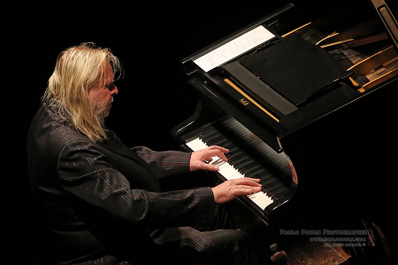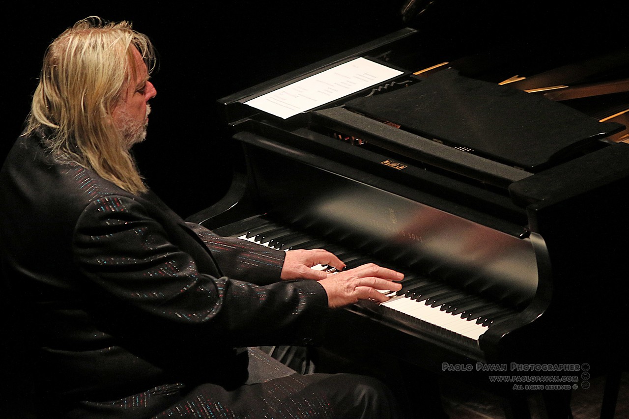 Basta vederlo entrare sul palco, senza fronzoli, barba e lunghi capelli bianchi, per sentire da subito il potere taumaturgico del rock e l’aleggiare della grande musica. Un abito a giacca lunga, elegante in lamè colorati, ma rigorosamente in scarpe da ginnastica, Rick Wakeman, storico personaggio del rock fin dagli anni 70, in band come gli Yes e con collaborazioni con i più grandi della storia del rock, David Bowie, per citarne uno, con cui ha composto e suonato alcune delle sue più belle canzoni, è da sempre considerato uno degli eroi delle tastiere e della musica Prog, assieme a Keith Emerson, scomparso recentemente.