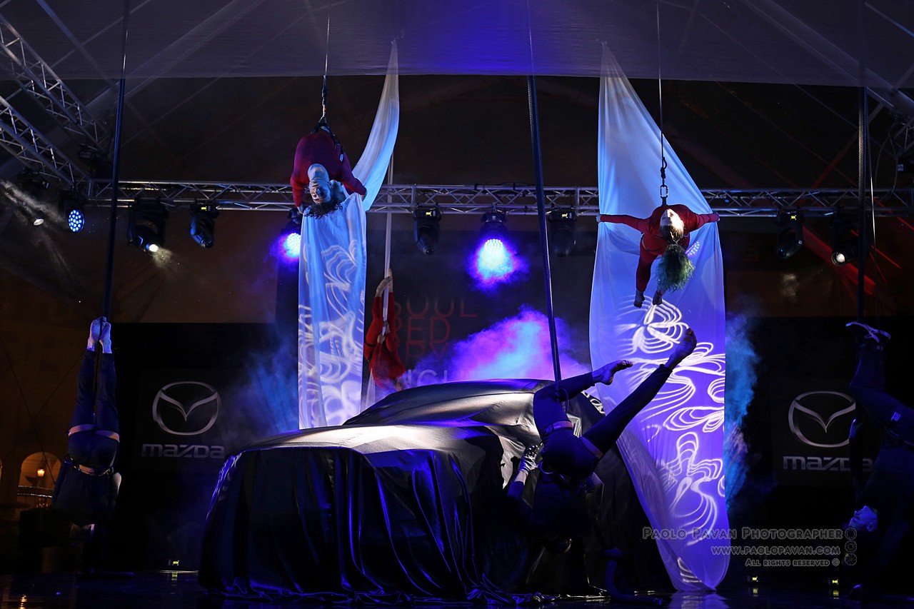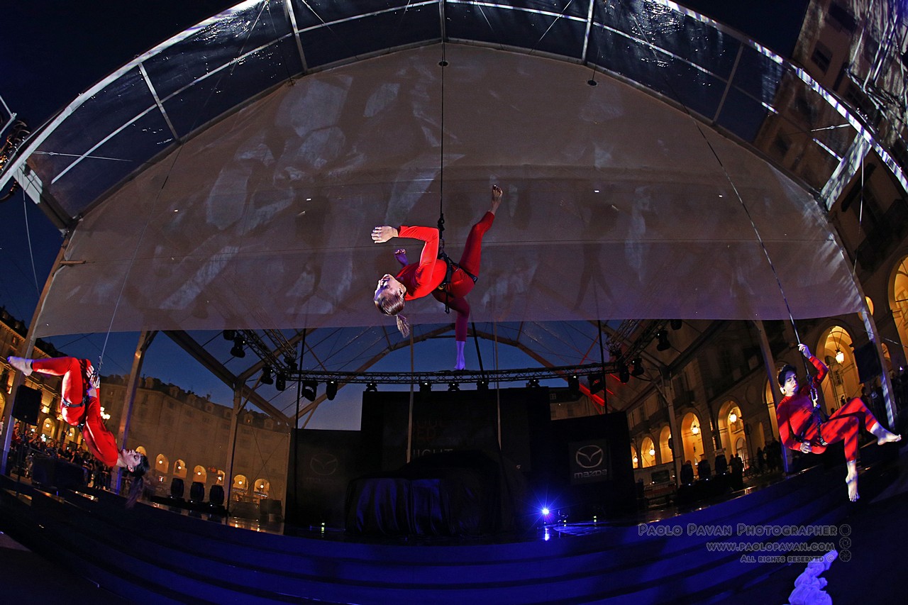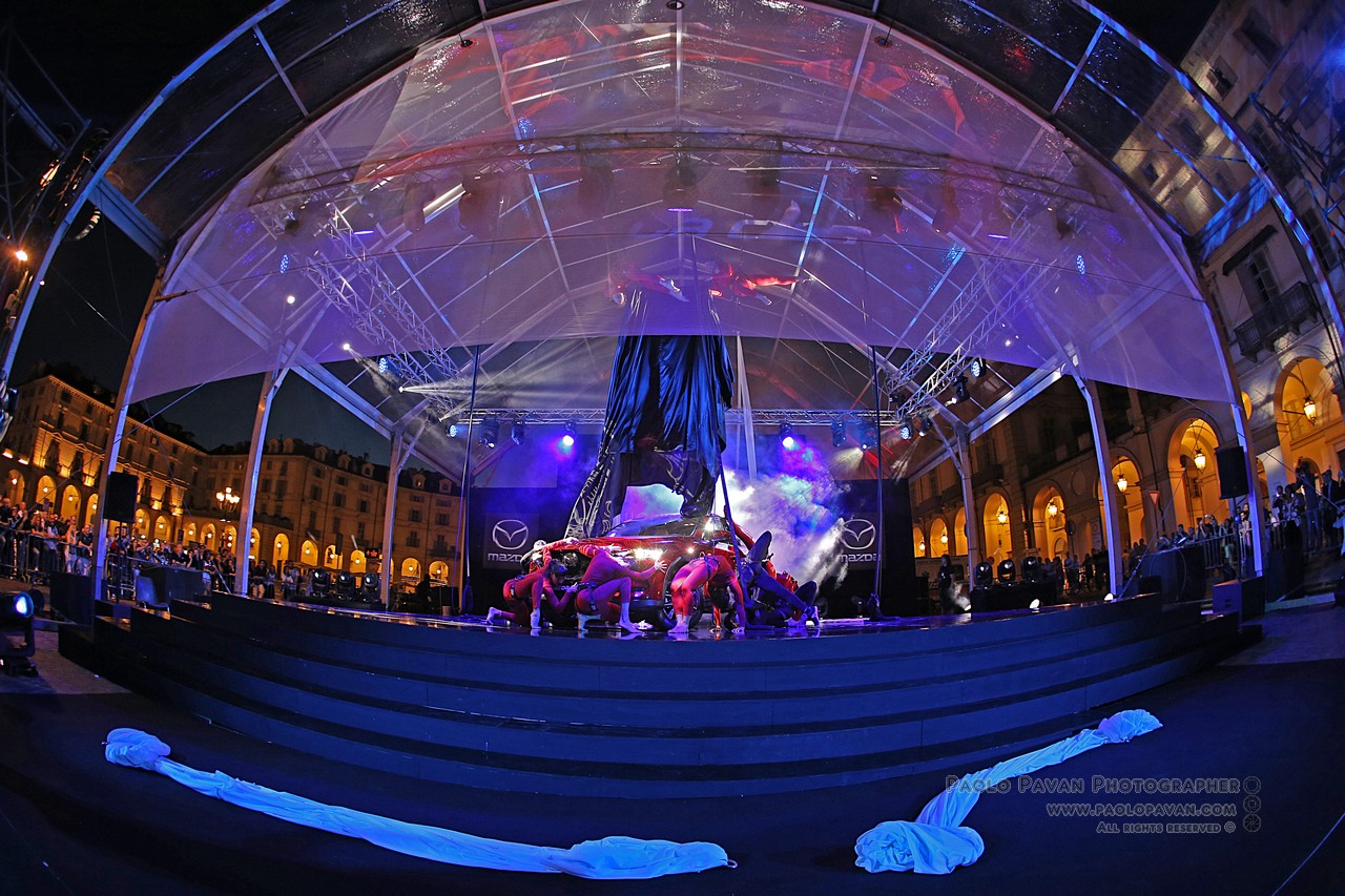 Grande evento a cornice delle manifestazioni per il Salone dell’Auto di Torino 2017, in Piazza Vittorio per la Soul Red Crystal Night, dove è stata presentata in anteprima nazionale la nuova Mazda CX-5 ed il rosso più bello del mondo. Uno spettacolo targato Fura del Baus, celebre compagna di danza e teatro, famosa in tutto il mondo. Dieci minuti di voli ed acrobazie nel cielo di Torino, sotto un manto rosso, esattamente come la nuova Mazda CX-5.