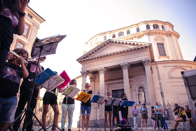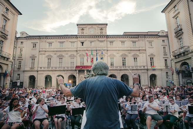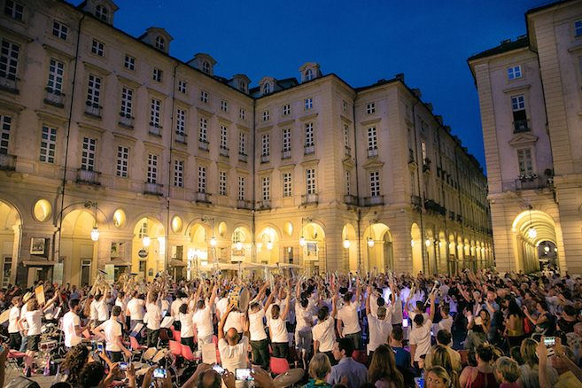 Anche quest’anno il solstizio d’estate è stato inaugurato con il gigantesco flash mob orchestrale degli strumentisti diretti dal Maestro Antonio Zizzamia, dell’Orchestra Fiati Giovanni XXIII di Pianezza. Il gran finale ha coinvolto oltre 200 musicisti hanno regalato alla Città di Torino 40 minuti (circa) di musica emozionale.