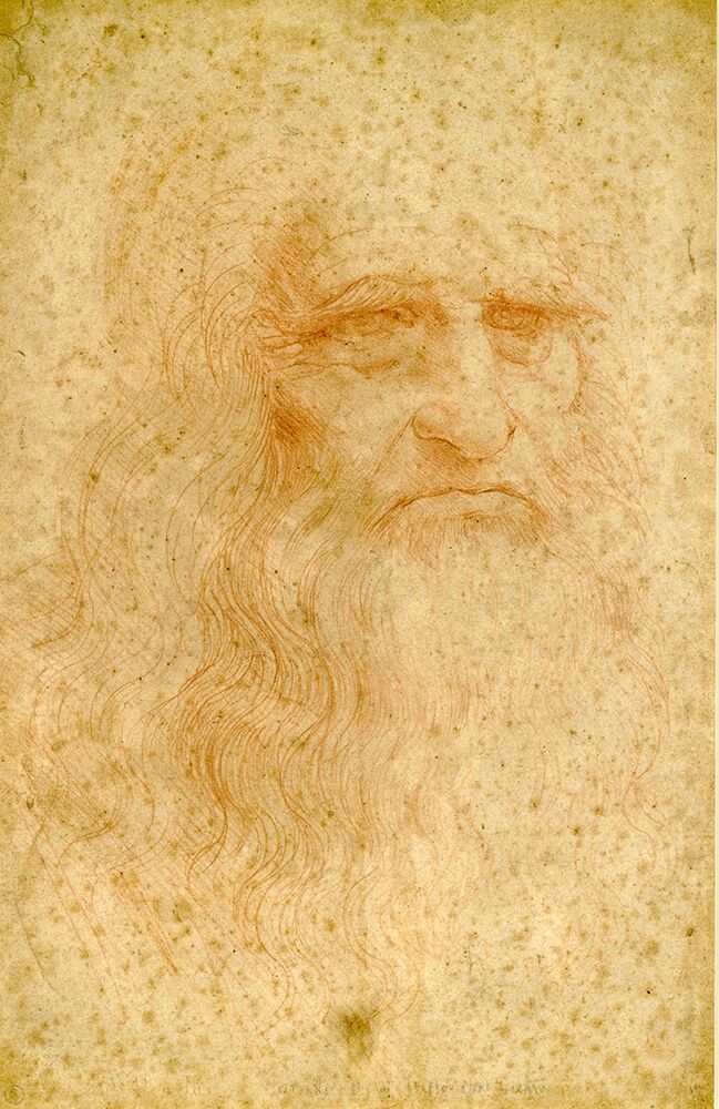 Un uomo canuto, con capelli e barba lunghi, ma con ampia stempiatura, dallo sguardo corrucciato che gli conferisce un’espressione severa: è l’intensa immagine, tratteggiata a sanguigna, che identifica in tutto il mondo il celebre pittore, scienziato e ingegnere fiorentino.
