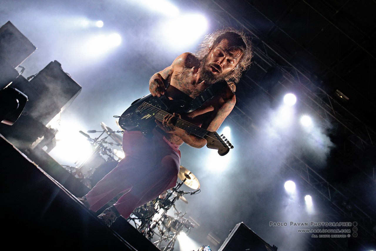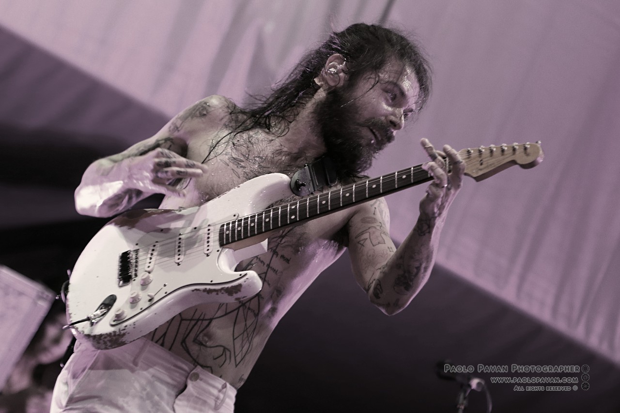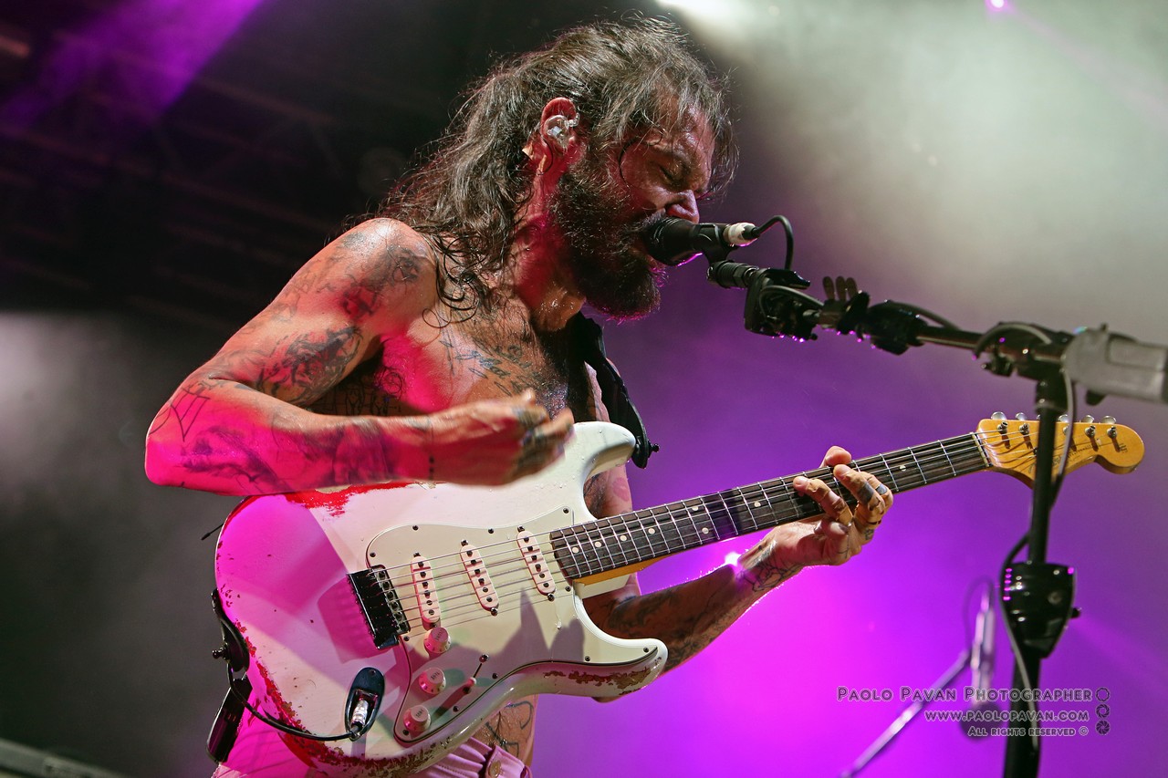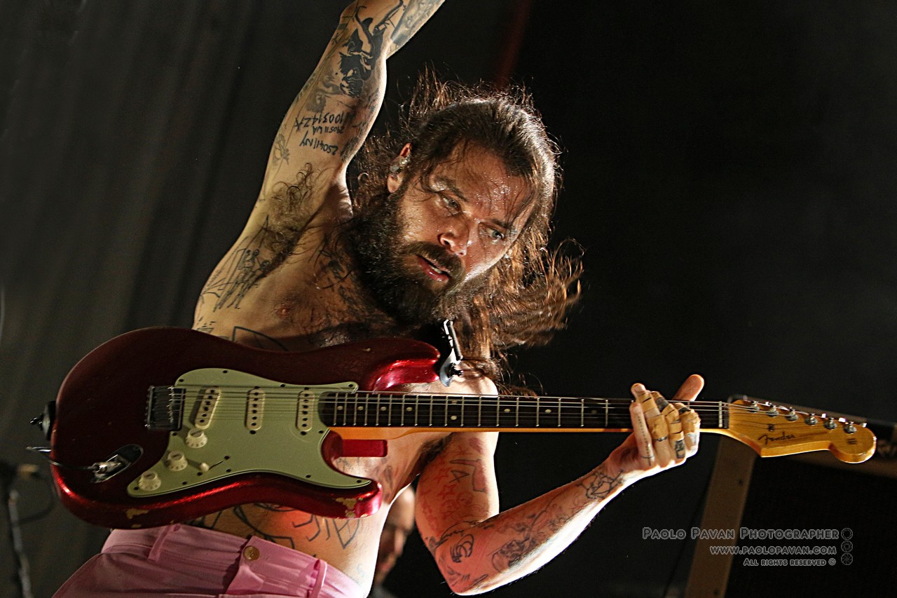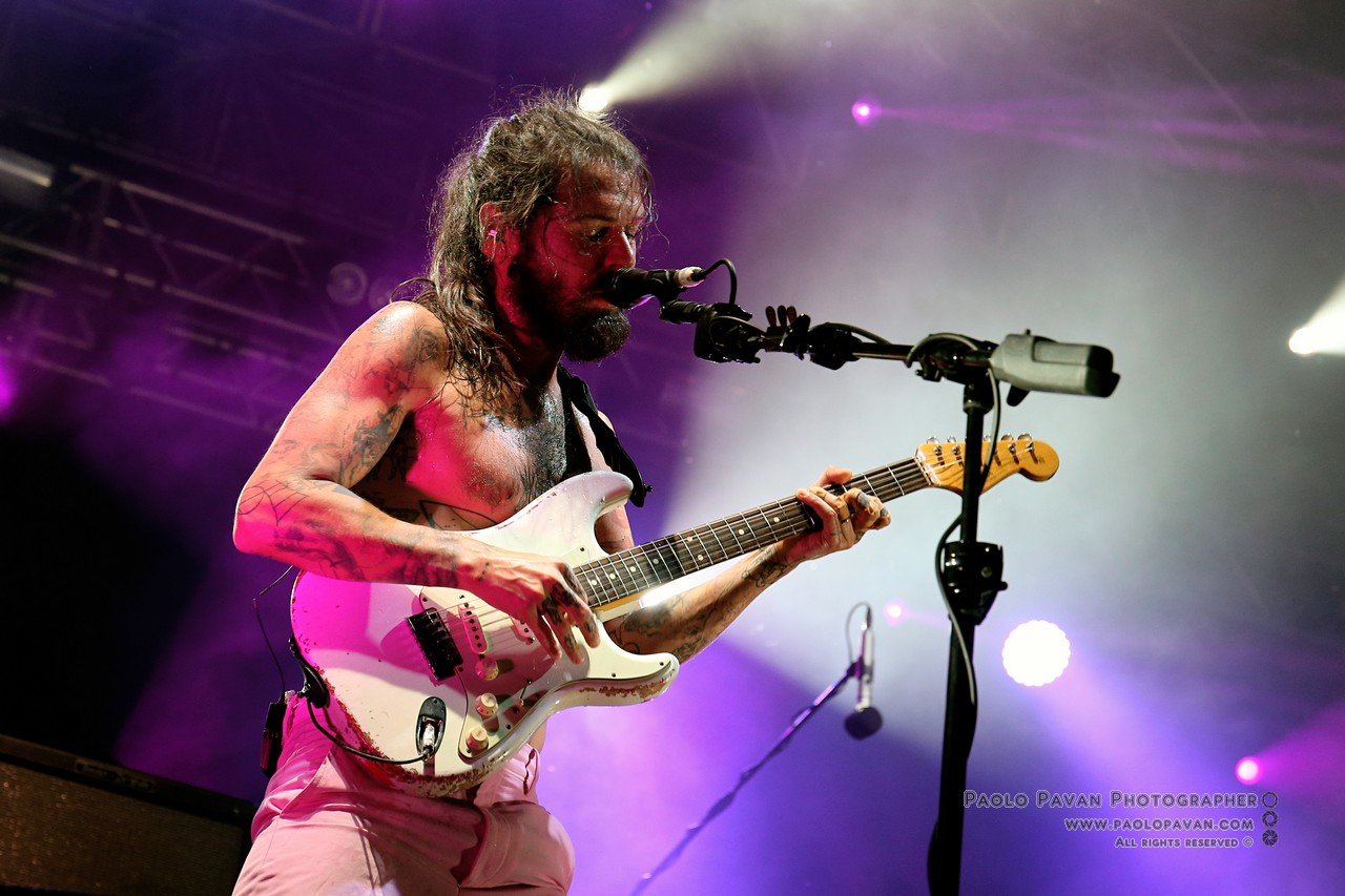 Capitanata dall’istrionico Simon Neil, affiancato dai fratelli Johnston, James al basso e Ben alla batteria. Rigorosamente a torso nudo, con Simon ricoperto ovunque da tatuaggi, non si fanno pregare, si fingono immobili ma partono subito con “Wolves Of Winter”, un concentrato di energia, chitarra e batteria all’ennesima potenza.