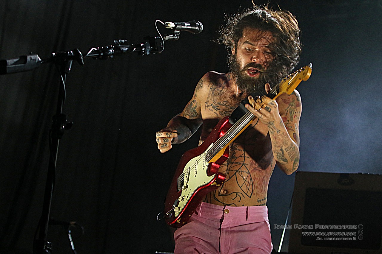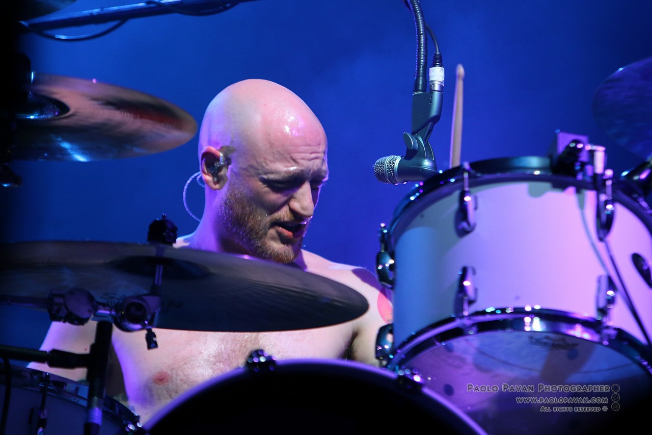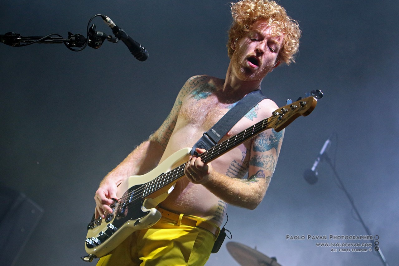 Non ci vuole molto per vedere Simon nelle sue celebri pose tarantolate, che tanto piacciono a tutti, che esprimono passionalità e impersonificazione stessa del potere della musica. Non stanno mai fermi, il pubblico è in visibilio, uno dopo l’altro passano i brani che gli hanno dato grande notorietà “Howl”, la melodica “Re-arrange”, “Mountains”, “Animal Style”, l’epica “Many of Horror”, per citarne alcuni. Sono fieri, ma senza filtri, il loro sound è quasi fisico, come i muscoli di Simon che si gonfiano, come le vene del collo come quando grida “I am a mountain / I am the sea / You can’t take that away from me”.