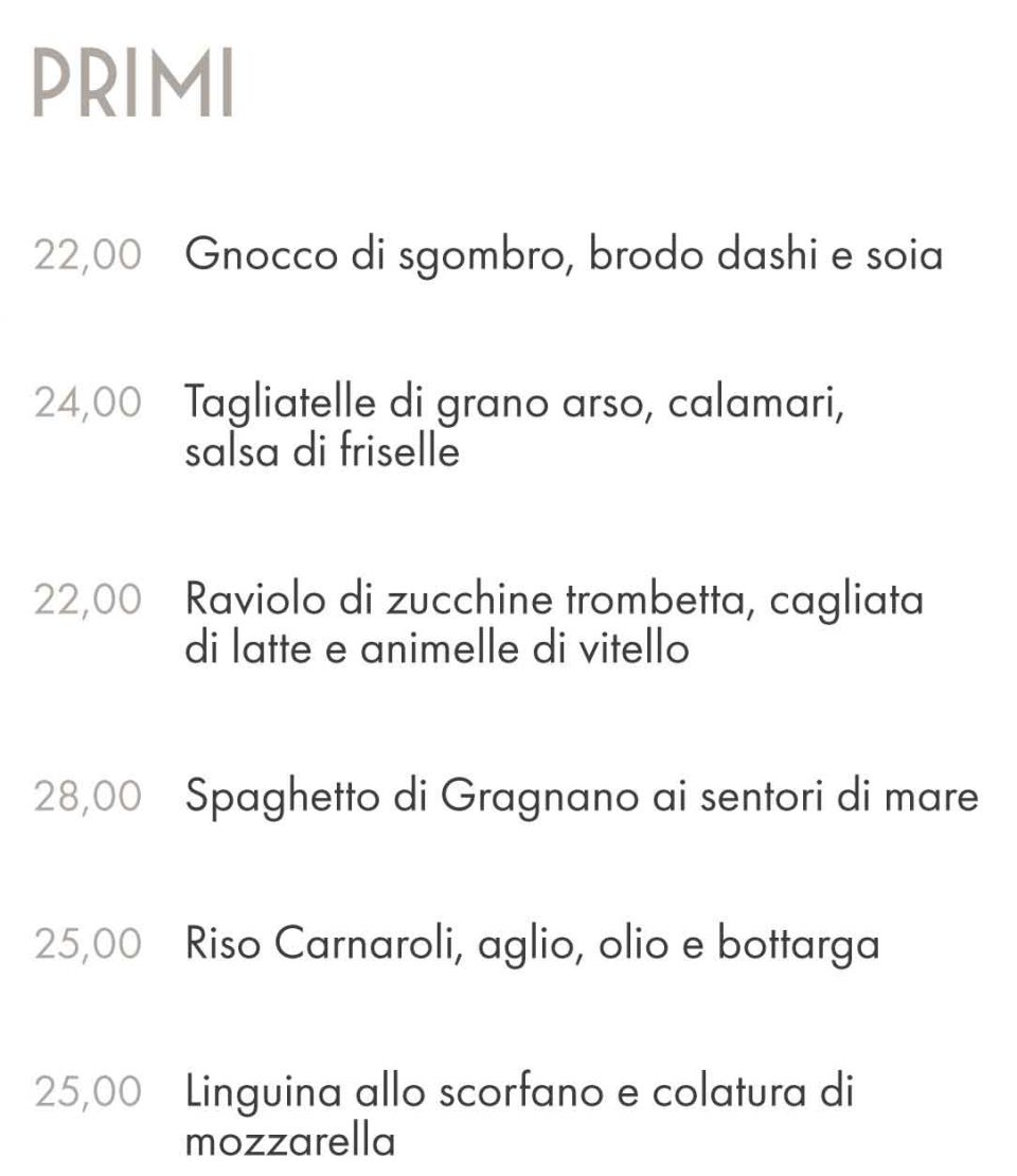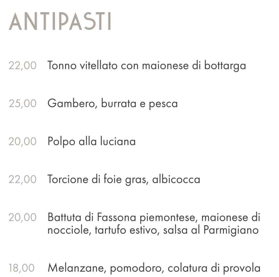 Il locale unirà la tradizione partenopea a quella piemontese. Qui di seguito un primo menù con prezzi (inevitabilmente non proprio popolari) disponibile