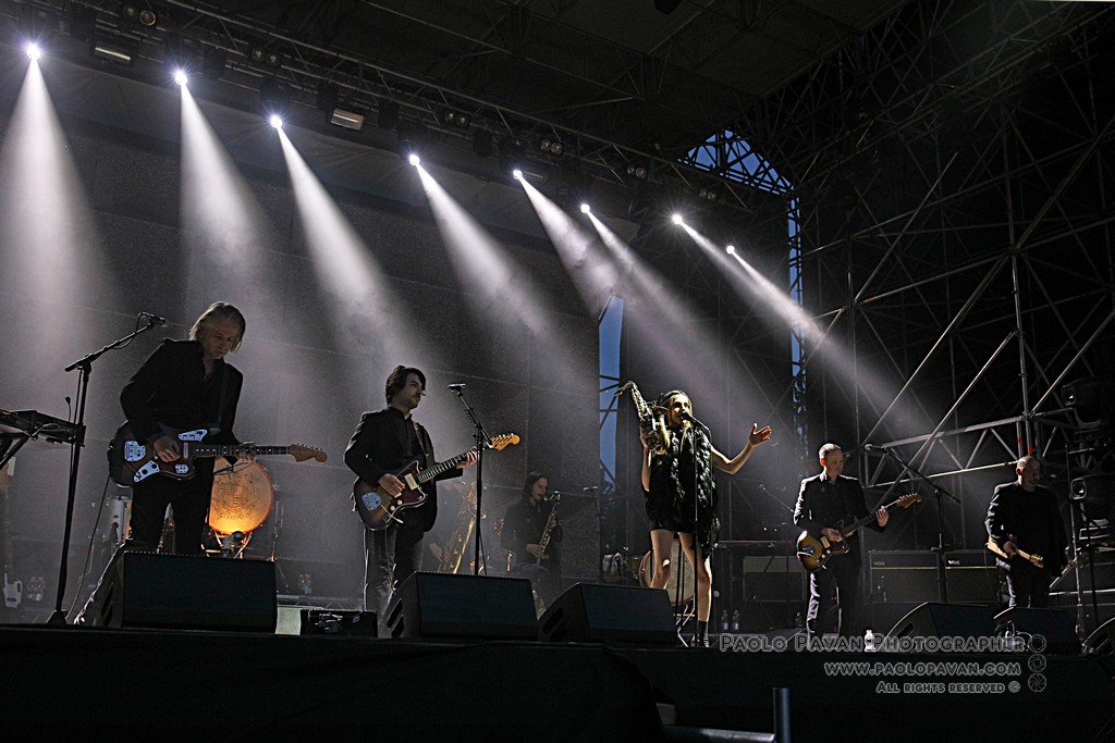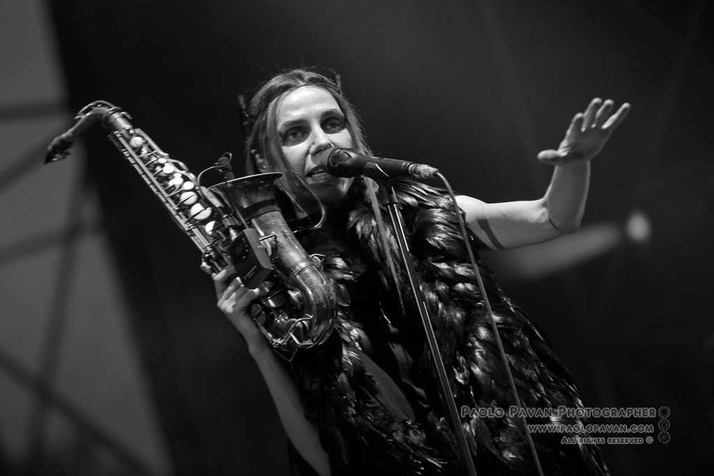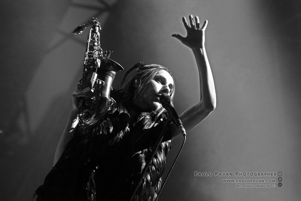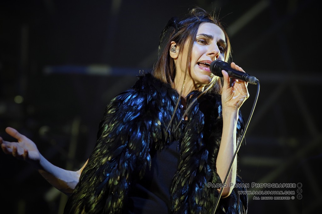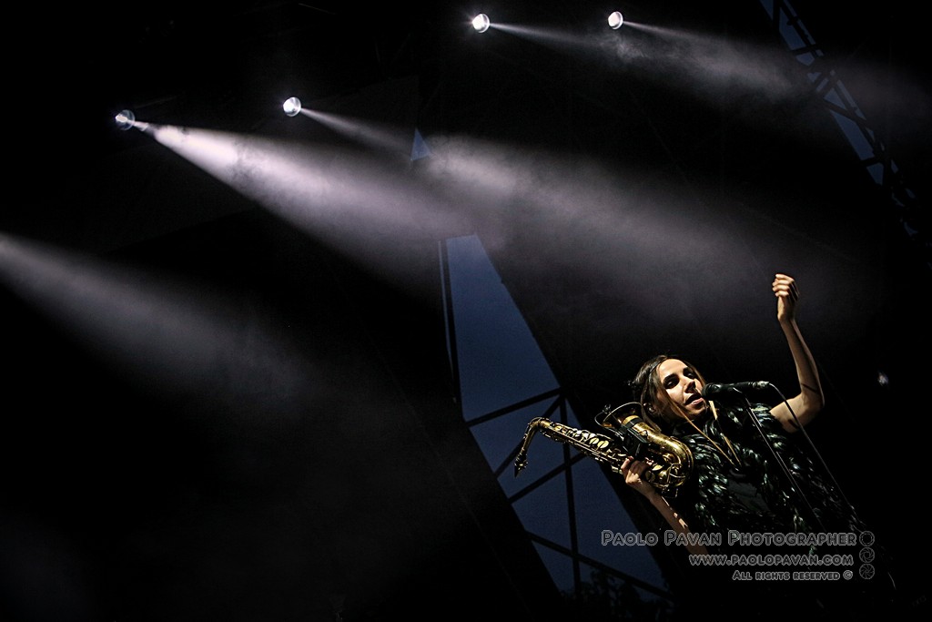 Puntuale alle 20.30 sale sul palco, lei, PJ Harvey, look inconfondibile e sax in mano. Una grande esibizione intima ed energica, con un crescendo costante lungo l’esibizione, grazie anche alla forza di una grande band di contorno.