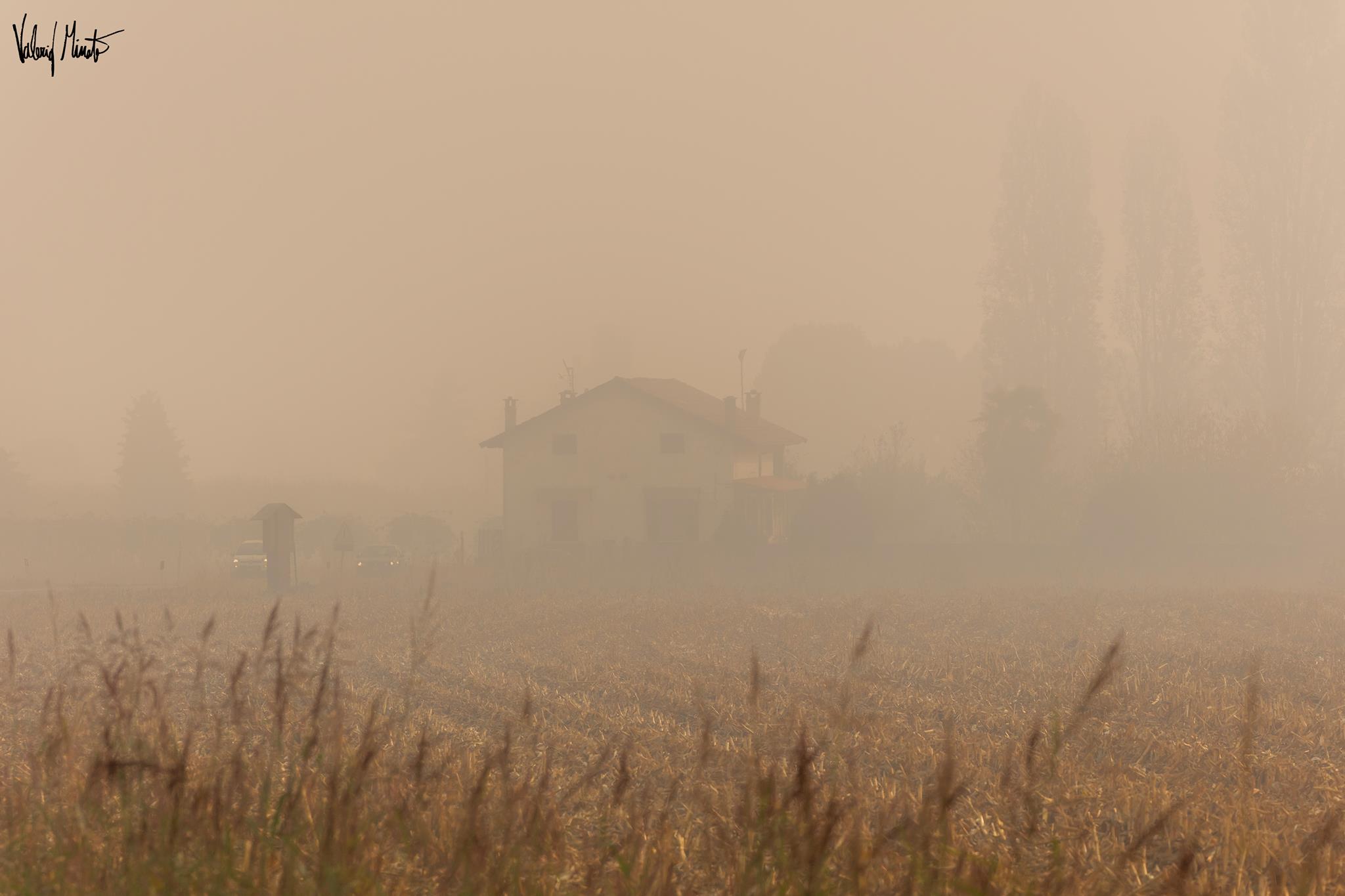 Le fotografie – spiega Minato – sono scattate partendo da Carignano, dove l’odore acre del fumo ha iniziato a farsi sentire per diventare via via più intenso avvicinandosi verso Pinerolo.