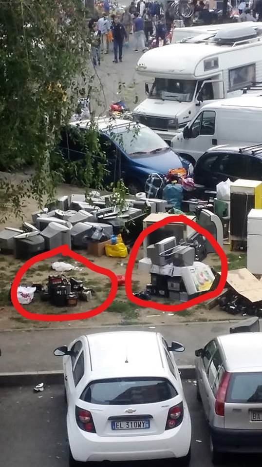 Un sito era ricavato da un occupazione abusiva di circa 2500 mq. ed era gestito da un cittadino nigeriano; un altro sito, di circa 3000 mq., con fabbricati in pessimo stato di manutenzione, era gestito da un cittadino nigeriano in possesso di autorizzazione per il commercio di veicoli usati, ed aveva all’interno 15 magazzini tutti stracolmi di rifiuti. Un altro sito di circa 5700 mq. era gestito da un cittadino italiano pluripregiudicato, ed era utilizzato come deposito di container dati in affitto a cittadini extracomunitari. Inoltre veniva individuato un centro di raccolta situato in un capannone di circa 400 mq. gestito da un cittadino ghanese in possesso di autorizzazione per il commercio di elettrodomestici usati.