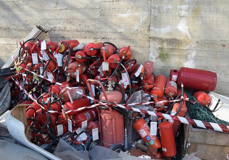 In seguito all’ispezione dei siti venivano sequestrati complessivamente 6586 batterie di autoveicoli al piombo esauste, 3871 motori di frigorifero, 1068 estintori (308 degli estintori rinvenuti all’interno di uno dei siti risultavano di provenienza furtiva e venivano posti sotto sequestro giudiziario), 5300 tra televisori ed apparecchiature elettroniche ed elettrodomestici, 5010 pneumatici, 10 mq. di parti di motore.