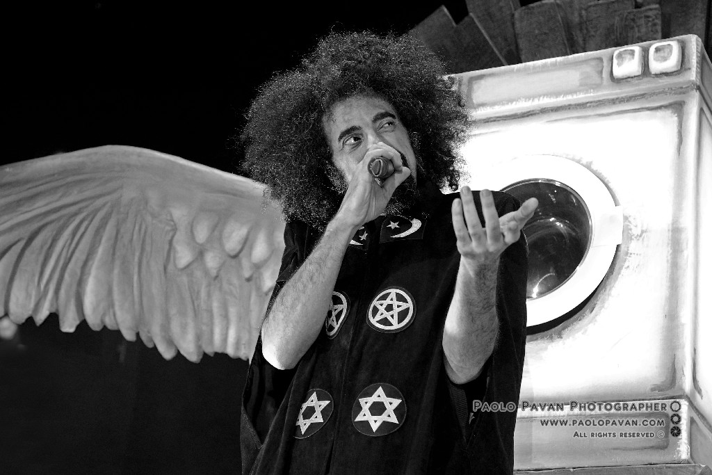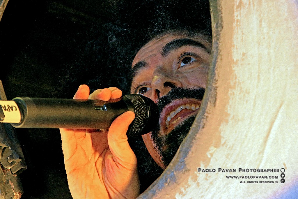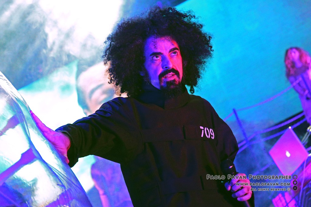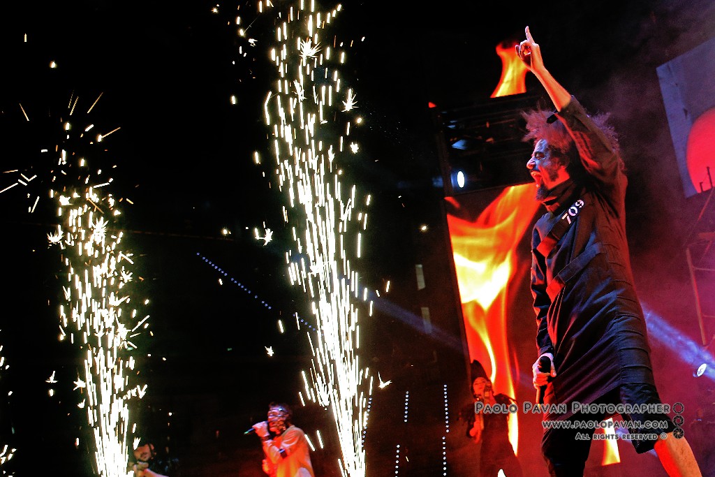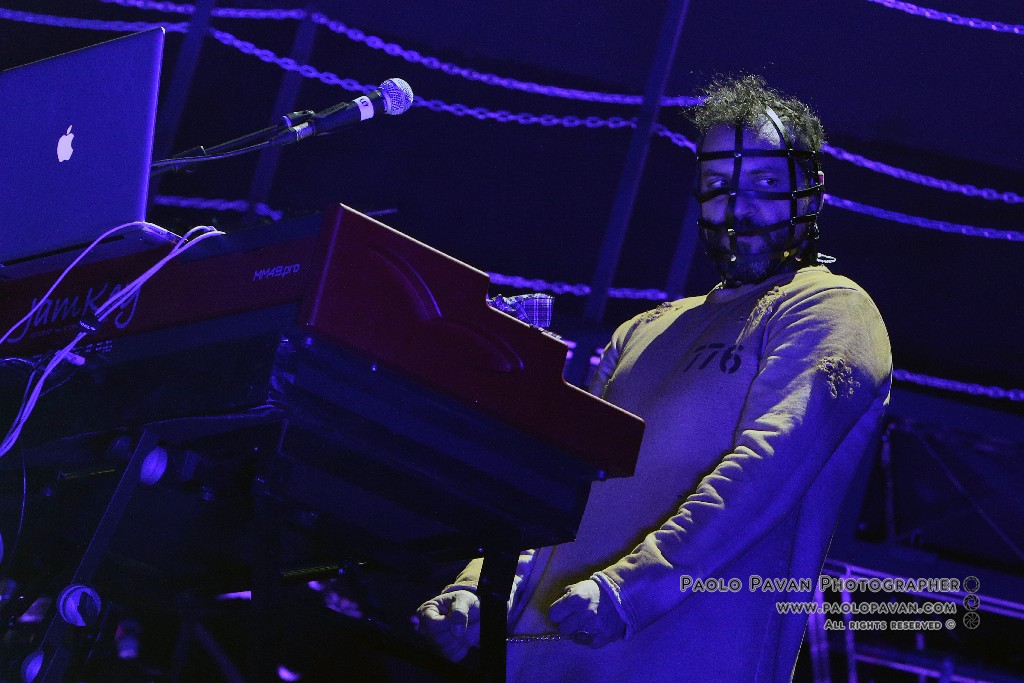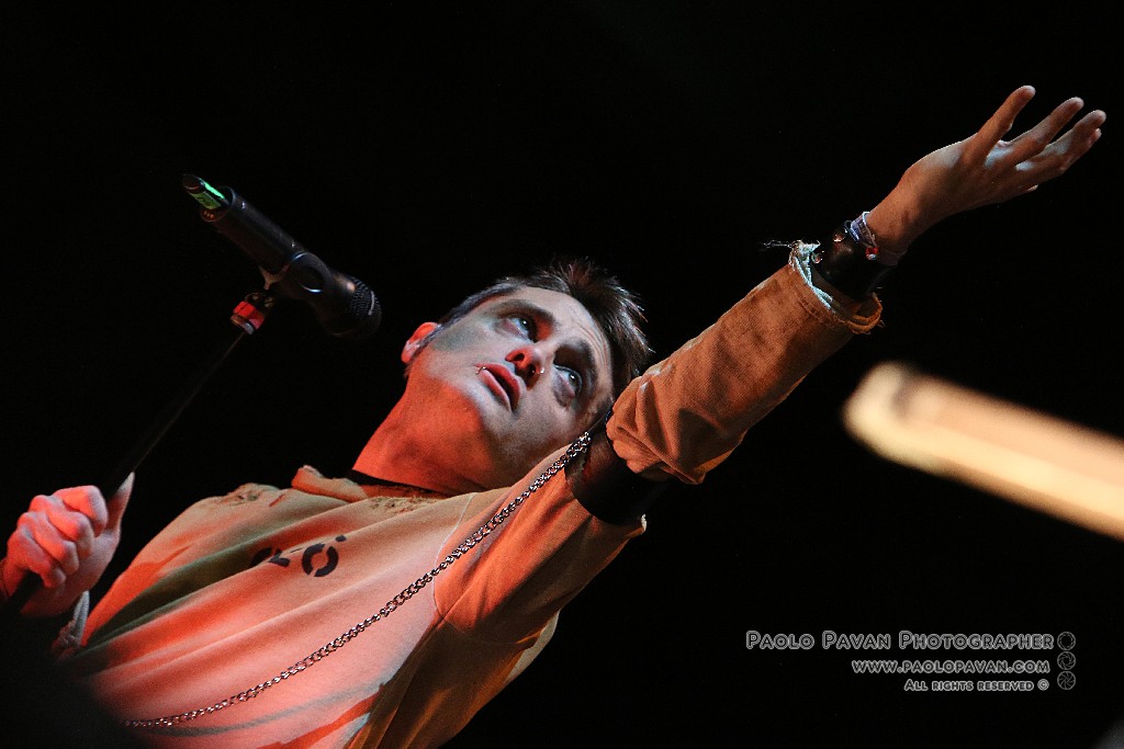 Non solo per la qualità e l’impegno dei testi, che si fanno molto più personali nell’ultimo album e per la grande capacità di miscelare influenze musicali diverse, dal rap al rock, fino al metal, ma per la costante crescita del livello del suo show. Ogni brano è una storia a se, con scenografie ed interpretazioni dedicate, ballerini e musicisti, con Capa gran cerimoniere. Uno show diviso sostanzialmente in due parti, la prima dedicata al suo nuovo lavoro, con questi incredibili estremi, dai pezzi intimi e controversi sul suo passato e presente, come Prisoner 709 con cui apre in maniera esplosiva il concerto, come Larsen, dove racconta la sua odissea e sofferenza in balia dell’acufene di cui soffre, fino a Ti fa stare bene, pluriprogrammato brano dalle radio, che lancia il messaggio opposto, “dobbiamo fare ciò che ci fa stare bene”. C’è spazio per Confusianesimo, L’uomo che premette e Autoipnotica con echi elettronici e di krautrock.