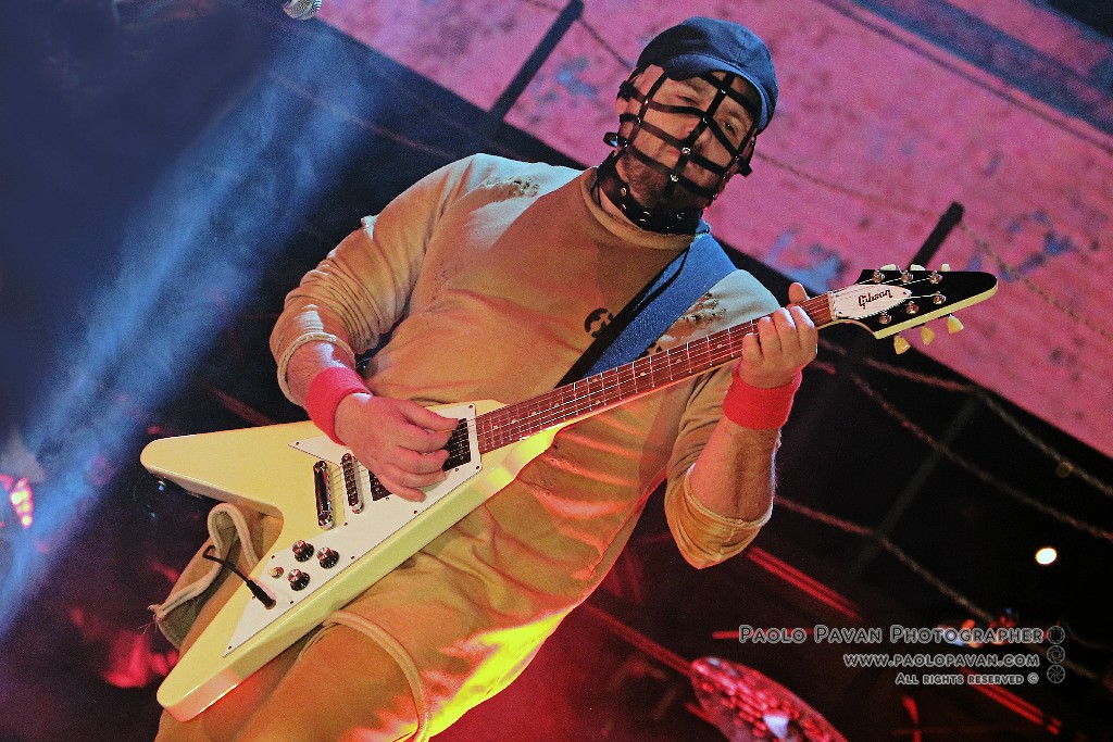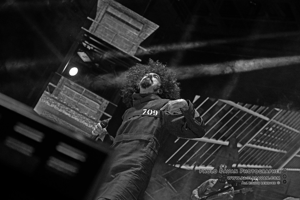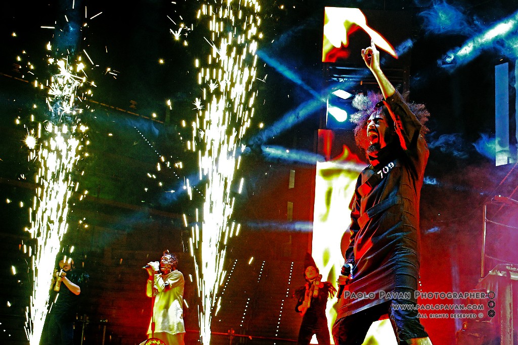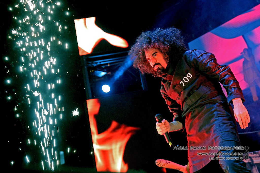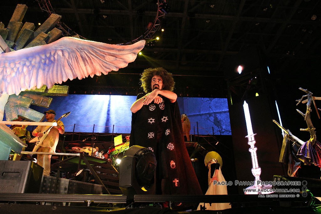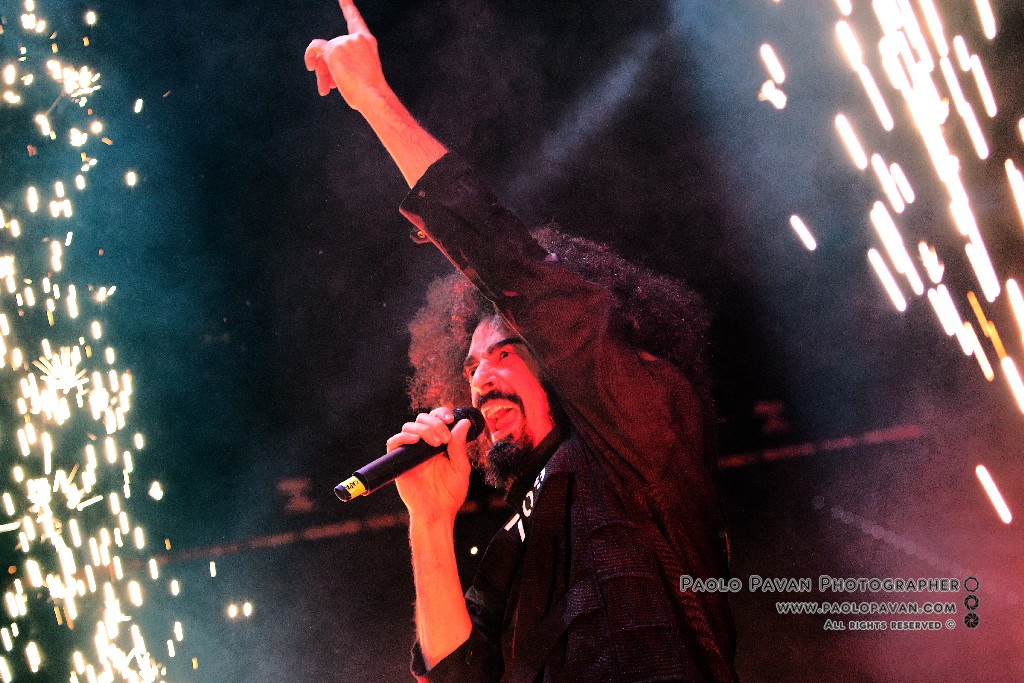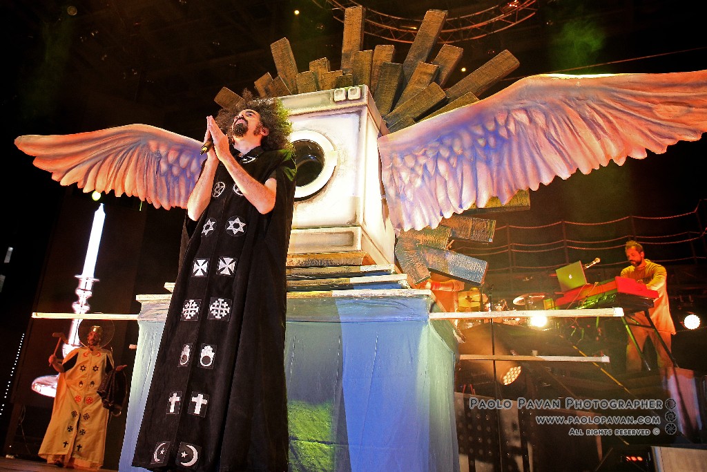 Non solo per la qualità e l’impegno dei testi, che si fanno molto più personali nell’ultimo album e per la grande capacità di miscelare influenze musicali diverse, dal rap al rock, fino al metal, ma per la costante crescita del livello del suo show. Ogni brano è una storia a se, con scenografie ed interpretazioni dedicate, ballerini e musicisti, con Capa gran cerimoniere. Uno show diviso sostanzialmente in due parti, la prima dedicata al suo nuovo lavoro, con questi incredibili estremi, dai pezzi intimi e controversi sul suo passato e presente, come Prisoner 709 con cui apre in maniera esplosiva il concerto, come Larsen, dove racconta la sua odissea e sofferenza in balia dell’acufene di cui soffre, fino a Ti fa stare bene, pluriprogrammato brano dalle radio, che lancia il messaggio opposto, “dobbiamo fare ciò che ci fa stare bene”. C’è spazio per Confusianesimo, L’uomo che premette e Autoipnotica con echi elettronici e di krautrock.