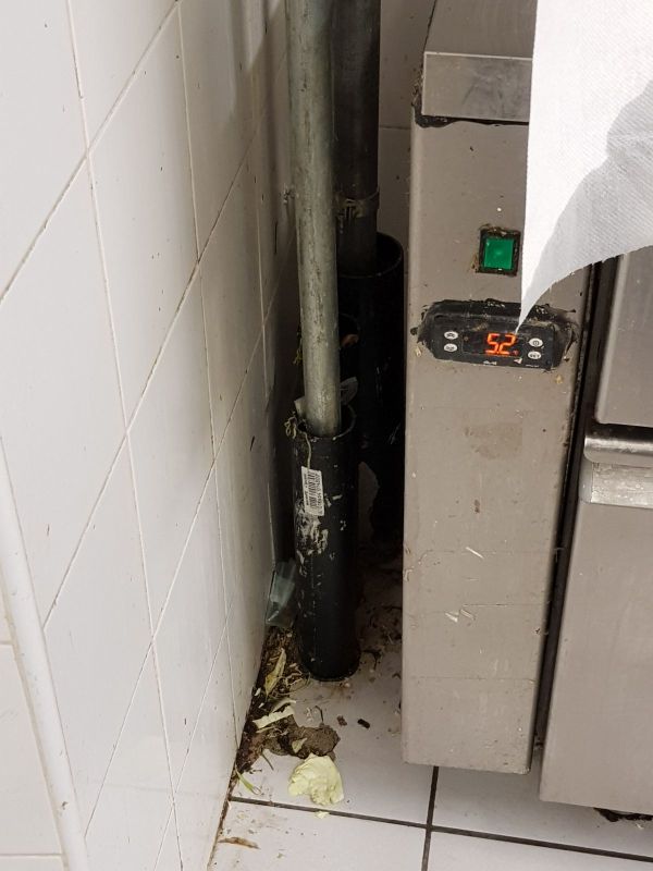 All’interno della cucina erano anche presenti tre griglie di scolo a pavimento completamente intasate da resti organici e liquami vari emananti odori nauseabondi che si diffondevano all’interno della cucina.