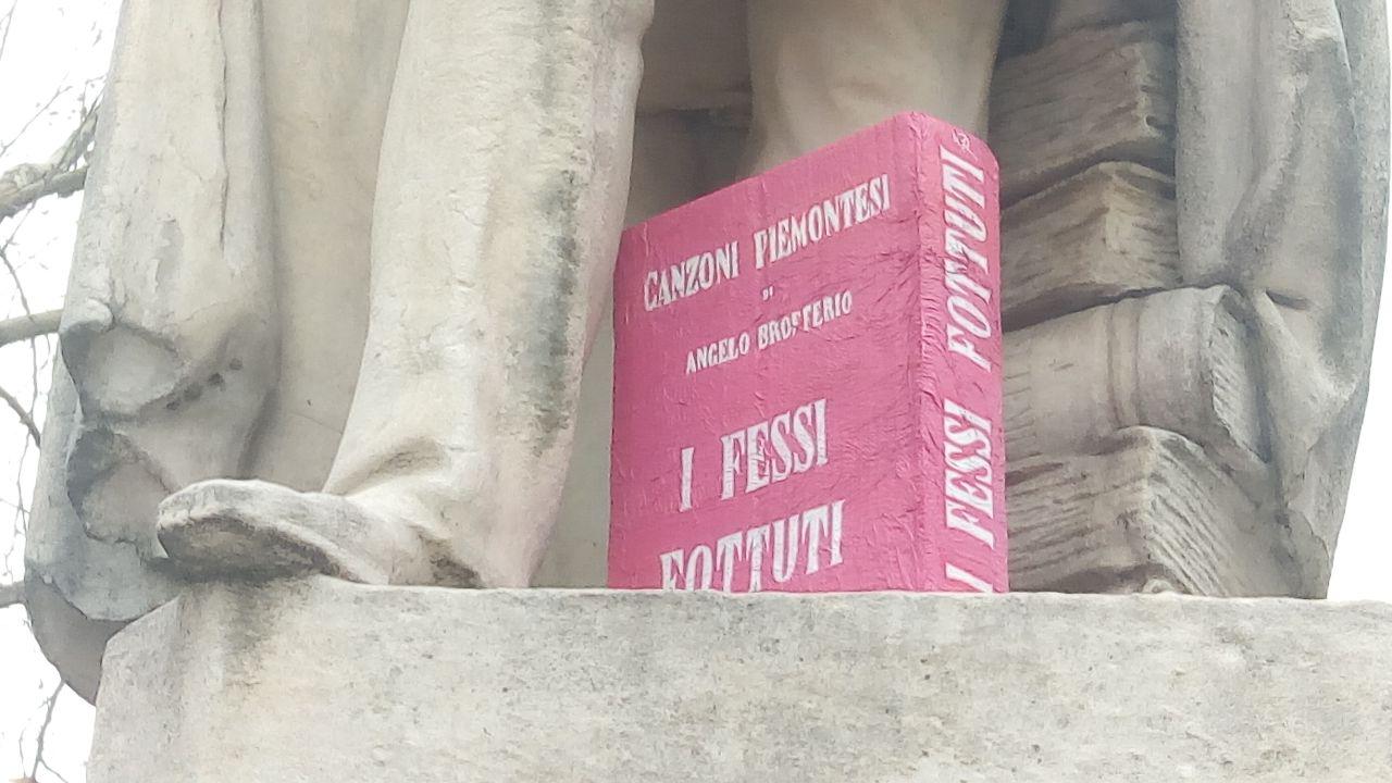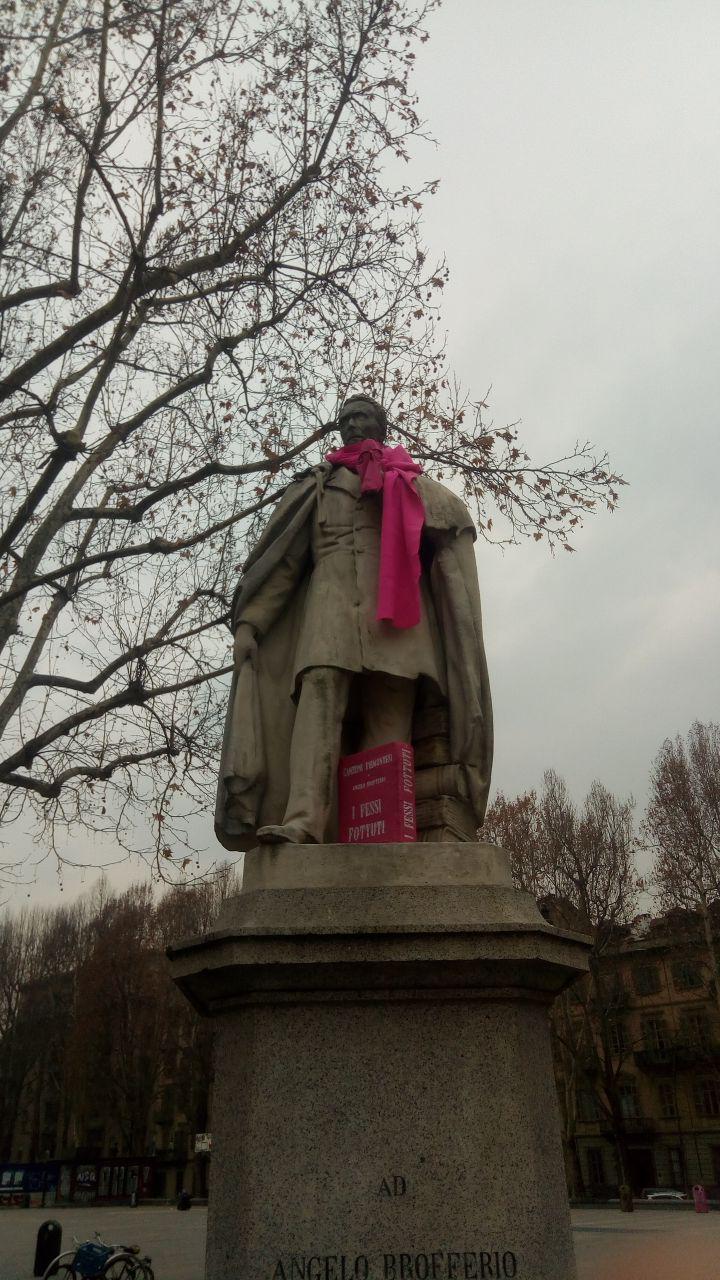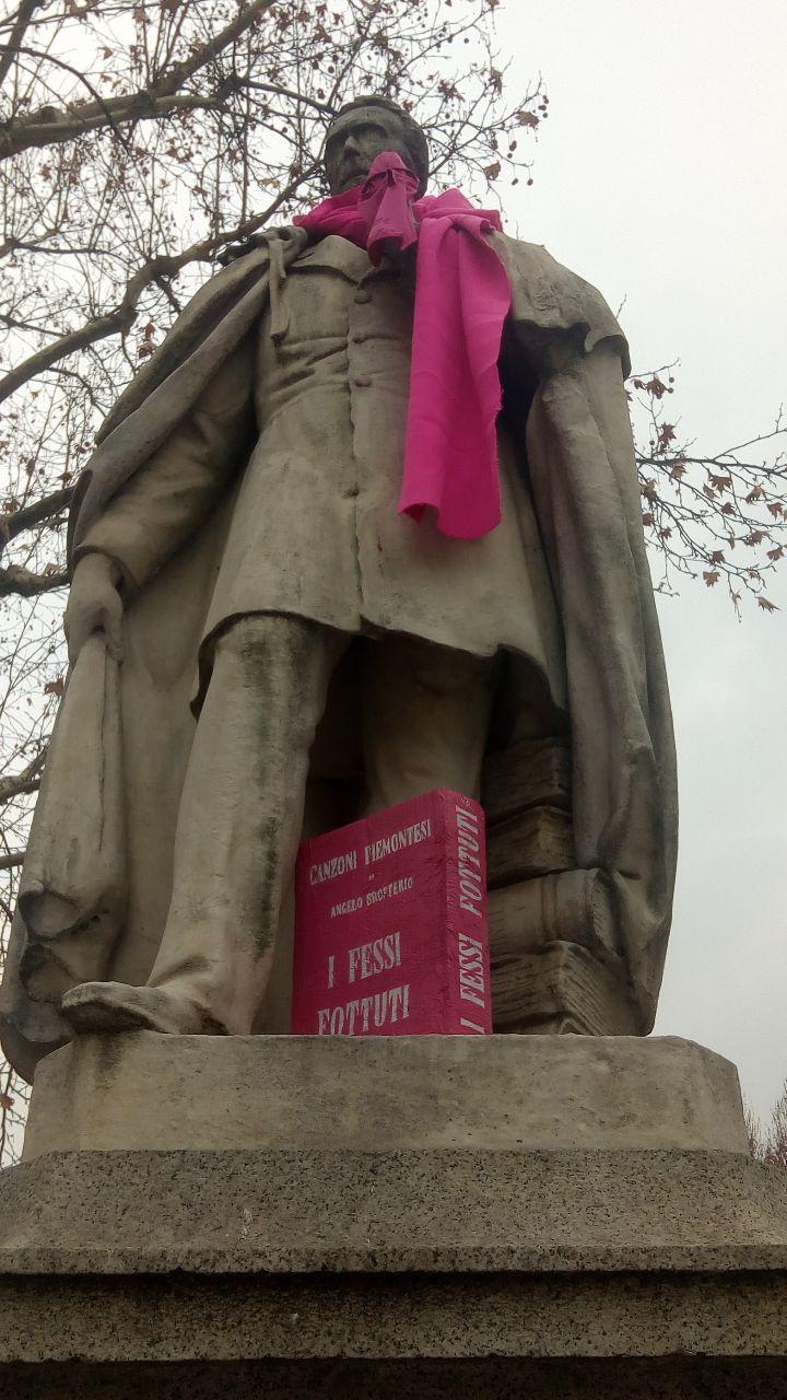 La pantera rosa di Torino colpisce il monumento a Brofferio e ricorda i suoi Fessi Fottuti